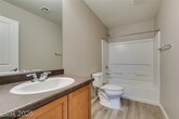 OUTSTANDING HOME IN AN OUTSTANDING COMMUNITY! This beautifully maintained home offers stylish vinyl plank flooring throughout—no carpet! The bright, open great room flows seamlessly into the kitchen featuring black appliances and ample cabinet and counter space. All bedrooms include ceiling fans for year-round comfort. The spacious primary suite boasts a walk-in closet, dual sinks, and a tub/shower combo. Enjoy outdoor living in the private backyard with an expansive paver patio, high walls, and a low-maintenance side yard with synthetic grass and shrubs. Community amenities include a park, pool, and playground—everything you need for comfortable, convenient living! (Base rent - $1,850 + $37 RPB)