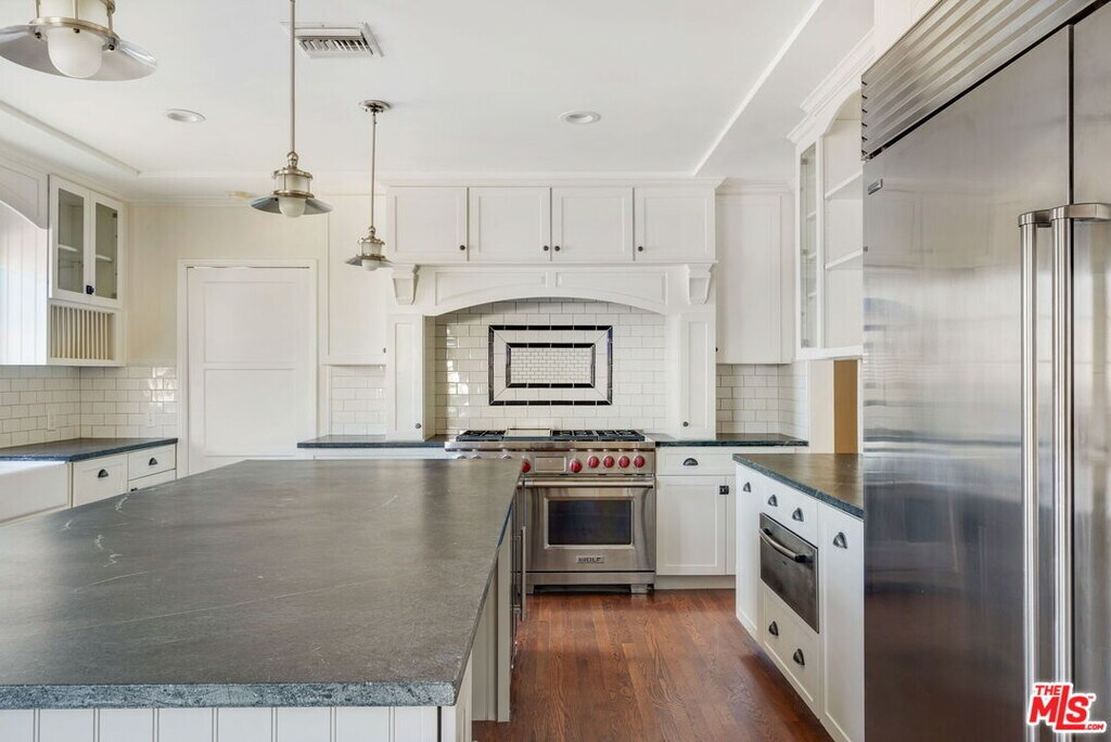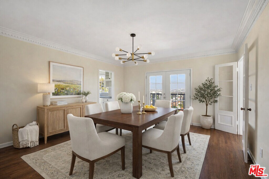 Perched in the highly coveted historic View Park neighborhood, this stately traditional 5-bedroom, 5-bath residence offers breathtaking, expansive city views stretching across Downtown Los Angeles and beyond. Thoughtfully designed with a seamless, flowing floor plan, nearly every room captures stunning skyline vistas creating a dramatic yet serene backdrop for daily living and entertaining. The main level is ideal for hosting, anchored by a chef's kitchen featuring an oversized center island, custom cabinetry, elegant pendant lighting, a side-by-side Sub-Zero refrigerator, warming drawer and a professional-grade Wolf range oven. Adjacent living and dining spaces open effortlessly, framed by custom moldings, French doors, and refined architectural details throughout. The oversized living room impresses with coffered ceiling and timeless craftsmanship, while contemporary decorative lighting adds a modern touch. All five bathrooms have been beautifully updated, and the home is equipped with central heat and air for year-round comfort. The flexible layout includes 3 bedrooms and 2 baths upstairs, a bedroom/study, power room & full bath on the main level, and a lower level with the 5th bedroom, full bath and family room that opens directly to a quaint covered patio and the backyard where expansive city views continue to steal the show. Centrally located 15 minutes from Beverly Hills, the beach cities, Downtown Los Angeles, and LAX...this exceptional home combines classic elegance, modern convenience, and an unparalleled location in one of Los Angeles' most sought-after neighborhoods. MLS# 26644267