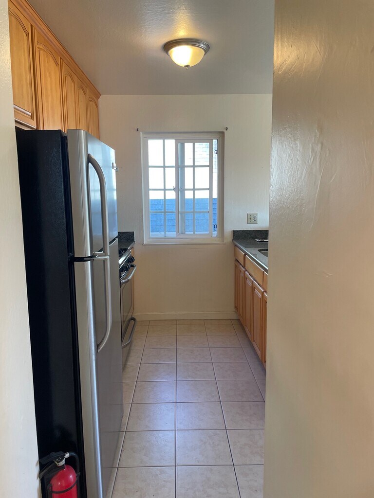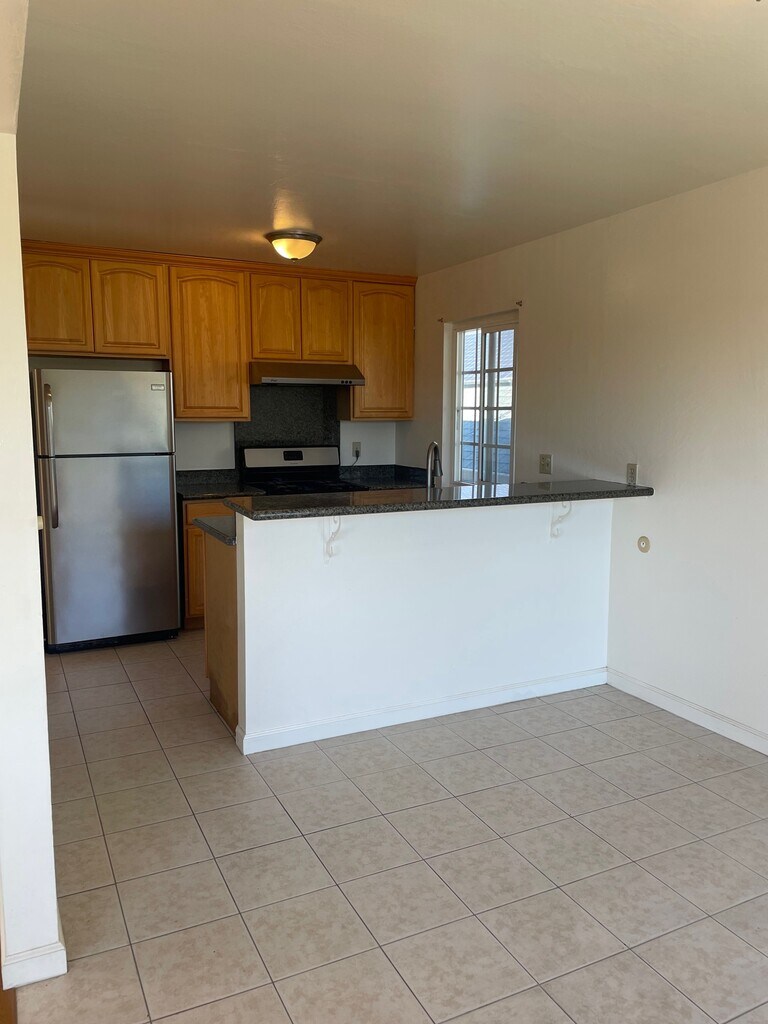 Spacious upper unit in duplex with laminate hardwood floors, double pane windows and open layout. Kitchen with oak cabinets and granite bar countertop opening up to separate eating area. Stainless appliances include gas stove, refrigerator Bathroom with shower over tub. Off street parking in front of garage. Garage NOT included in rental. In the heart of Laurel close to World Ground, First of Flour Pizza, Planet Fitness and Farmer Joes. Minutes, from public transportation and 580, Highway 13 and casual carpool. Garbage paid.