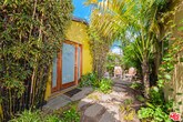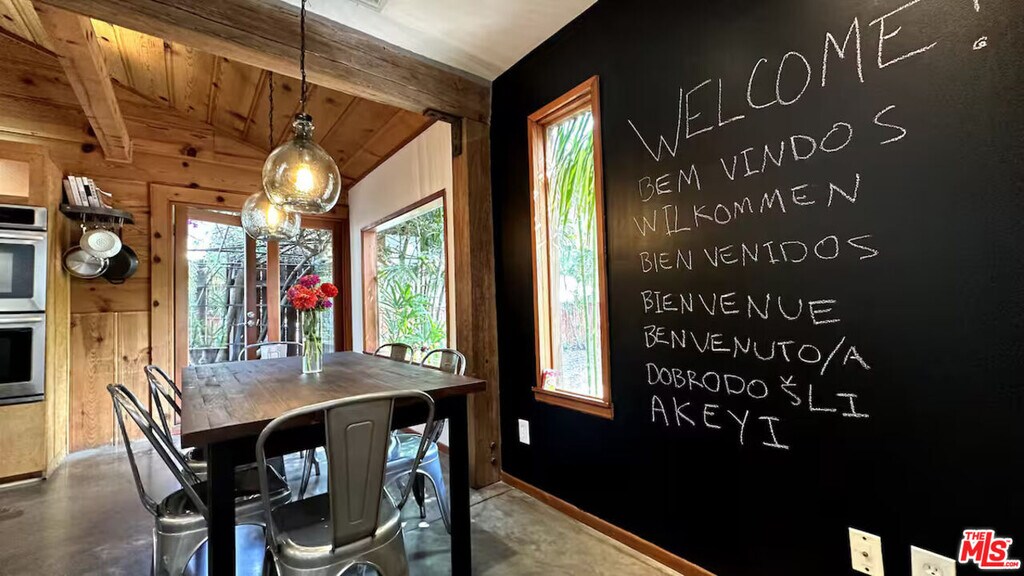 Enchanting organic modern artist's retreat in the coveted Woods" neighborhood of Mar Vista. This creative mini-compound includes an upgraded 3 bed/2 bath front house plus a detached studio/studio/office/4th bedroom with bath. Available fully furnished, this property features a delightful open plan front house with spacious living, dining & kitchen space with polished concrete floors and vaulted ceilings w/vintage beams reclaimed from the old Ocean Park pier. Cook's kitchen w/sleek concrete countertops, breakfast bar, Wolf & Bosch appliances. Inviting dining area surrounded by lush garden windows. Honey bamboo floors in master & 2 addtl bedrooms. Generous master suite overlooking the garden w/spa tub, skylight & walk in closet. Artistic light fixtures & master bath glass sink, creative details throughout. French doors from master to enchanting entertainer's backyard w/outdoor Moroccan Room/lanai, hot tub, fire pit & peaceful sitting areas. Fabulous bonus guest studio/office/w/bath, high ceilings, skylight. Mature citrus & fruit trees, palms & a canopy of green creates a private oasis just over the Venice border in this desirable pocket of Mar Vista. Perfect for families, artists & soulful types who appreciate organic architecture, design & lush living near the beach. Electric car charger too! Move in ready fully furnished or negotiable. Avail Feb 1st." MLS# 25628813