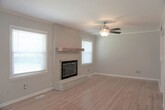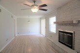 Large open living room/dining combo with decorative fireplace. Original wood floors and light and bright rooms. Fully fenced yard and pet friendly. $20 monthly resident services package required. Pet applications must be filled out and monthly pet rent will apply. Please also view our other inventory at