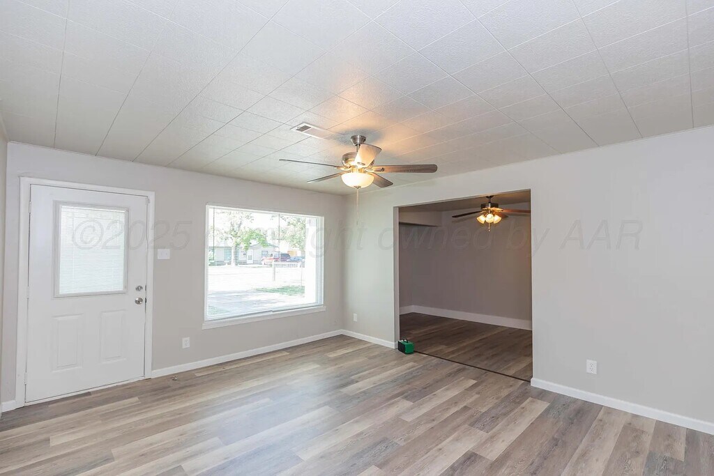 Newly updated interior and exterior 2 - Spacious living room with new large windows & great natural light Modern vinyl flooring throughout Beautiful kitchen with wood cabinetry, updated countertops, and stainless steel appliances Fresh paint and clean finishesBeautiful front yard and huge fenced backyard. Two storage shed at the backPet Policy: Dogs under 25lbs are welcome.