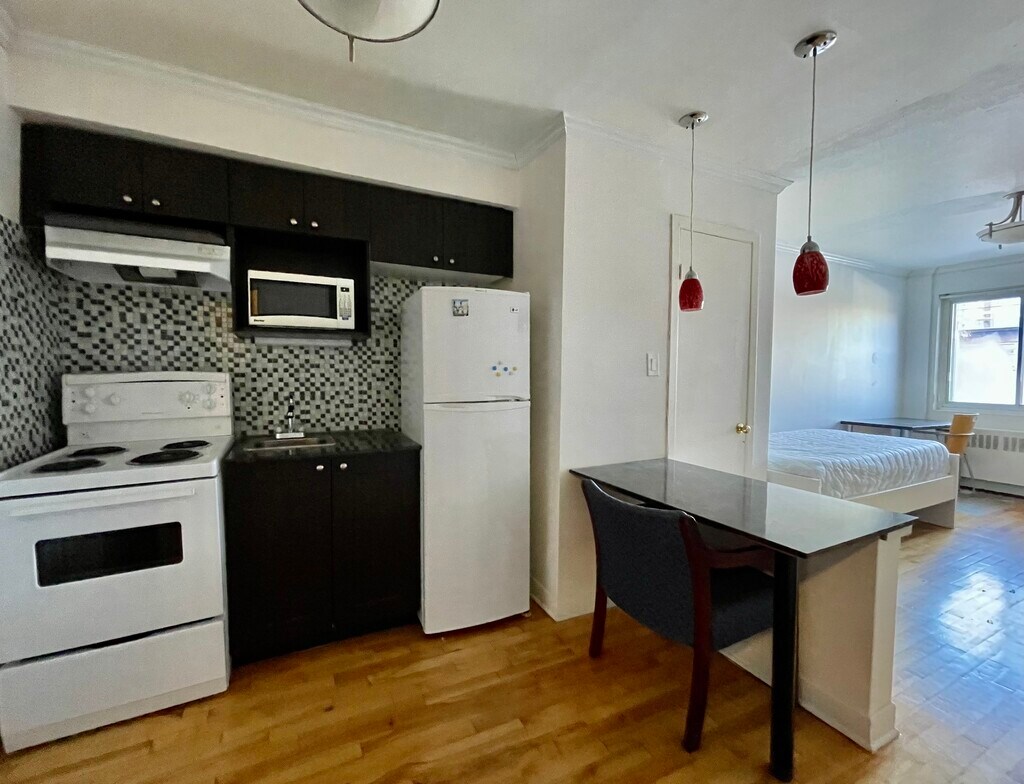 Whole, renovated studio apartment in Downtown, Montreal, at the campus of McGill university for rent for April 1st. lease term: negociation Location: 3617 Rue sainte-famille Montreal H2T2X5 Fully furnished with utilities (WIFI, heating, hydro…) for $1400/month Included: - Electricity/Hydro/WiFi/fridge/Stove/microwave/Desk/Chairs (2)/Single bed Washing machines and dryers are in building (at your cost) Nearby: - 8 min walk to McGill university Campus - 12 min walk to McGill University metro ( green line) - 2 min walk to Parc shopping center( Metro grocery store, Dollarama, Pharmaprix, restaurant, etc) Contact me if interested/want to schedule a visit! :) Studio entier, renovaté au centre-ville de Montréal à louer le 1er d'avril. durée du bail : à partir de premier d'avril. Lieu : 3617 Rue sainte-famille Montréal H2T2X5 Entièrement meublé avec services publics (Wifi, chauffage, hydro…) pour 1400$/mois Inclus: - Électricité/Hydro/WiFi/réfrigérateur/Cuisinière/micro-ondes/Bureau/Chaises (2)/Lit simple Les machines à laver et sèche-linge sont dans le bâtiment (à frais) Proche: - 8 min à pied du campus McGill - 12 min à pied du métro Université McGill (ligne verte) - À 2 min à pied du centre commercial Parc (épicerie Métro, Dollarama, Pharmaprix, restaurant, etc) Envoyez-moi un message si vous êtes intéressé/si vous souhaitez planifier une visite ! :)