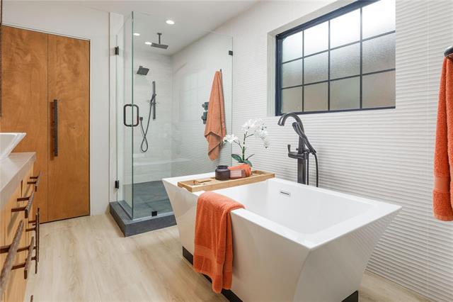 Located in the heart of University Park, 3617 Asbury Street is a beautifully updated single-family attached home showcasing contemporary design and thoughtful finishes and custom window treatments throughout. The home flows seamlessly into the dining area and kitchen, equipped with modern stainless steel appliances including a gas cooktop and oven and built-in refrigerator, an expansive kitchen island, and abundant storage—ideal for both everyday living and entertaining. Double doors lead to an outdoor patio area, and the downstairs bedroom offers an ensuite bathroom and walk-in closet. Upstairs, the oversized primary suite offers a seating area by the floor-to-ceiling fireplace, and an ensuite bath with soaking tub, separate shower, double sinks, and a custom walk-in closet. A large secondary upstairs bedroom features a walk-in closet and dual-sink vanity, while the conveniently located laundry room includes a brand-new washer and dryer. The home also features a two-car attached garage and a front driveway. Fully updated and move-in ready, this home blends modern comfort with timeless style in one of Dallas’ most sought-after neighborhoods.