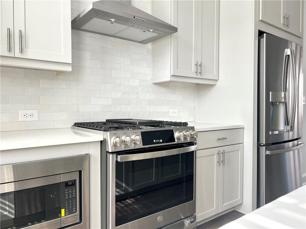 ***End Unit! This stunning 3 bed/3.5 bath townhome in a highly coveted gated community offers exceptional lifestyle and tranquility. The main level boasts a spacious open floor plan and natural light,featuring chef's kitchen with oversized quartz countertops,ample storage,sleek cabinets,and upgraded stainless steel appliances. Retreat to the serene master suite offering ensuite bathroom impresses with frameless walk-in shower and tub,double vanity for spa inspired experience. Two additional generously sized bedrooms with walk in closets and two full bathrooms provide flexibility for guests or home office. Residents enjoy community amenities and have convenient access to club house,pool,playground,and private pathway trail to Peachtree Ridge Park. Close proximity to shopping,dining,and I-85. The home is located in Ellington Subdivision. MLS ID 7713831