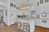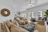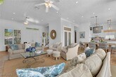 A welcoming Olde Naples retreat awaits at Neapolitan Sky! The stately Key West style home sits amidst lush landscaping on one of the prettiest tree-lined avenues in town,just a third of a mile from beach access. Approach the home from the circular driveway and enter across the the covered front porch. The main floor has an open white marble kitchen,dining area,living room,home office with adjacent full bath,and the master suite (this whole floor is handicap accessible from the garage!). Upstairs,find 4 guest bedrooms and 2 shared guest bathrooms. From the kitchen,a hall leads toward the back,providing access to the 3-car garage and stairway up to a private guest suite with a king size bed,TV,kitchenette and bathroom plus a bonus sleeping area with a twin size daybed accessible via a closable door - a perfect setup for a small family to share! The house can comfortably sleep 12-14 people. At the center of the property is the heated swimming pool and deck with chaise lounges,a pool bathroom and enclosed outdoor shower. A covered back porch off of the living room and kitchen accommodates an outdoor dining table that seats 8 and an outdoor living room with a porch swing.