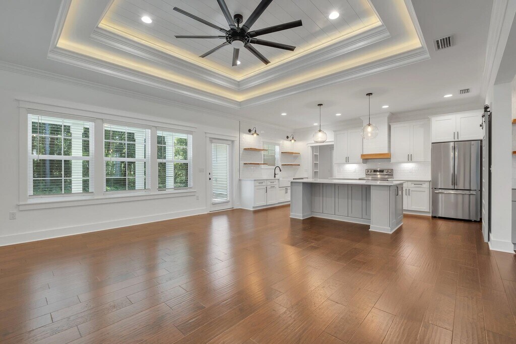 Bonnie Scott-WallsNewer 4 Bedroom, 2 1/2 Bath split plan with open floorplan in Monticello, Florida. Herringbone brick paver front porch and covered back porch is ready for you. Custom woodwork throughout, granite countertops, hand scraped wood floors, bar area with wine fridge, tray ceilings and more. Master bedroom has walk-in tiled shower, freestanding soaker tub and double vanities. Washer/Dryer included. Large two car garage with custom cabinets/workbench.