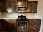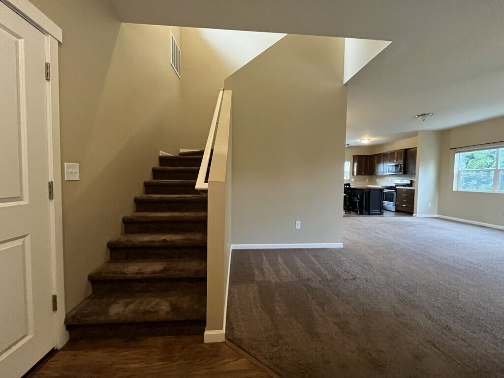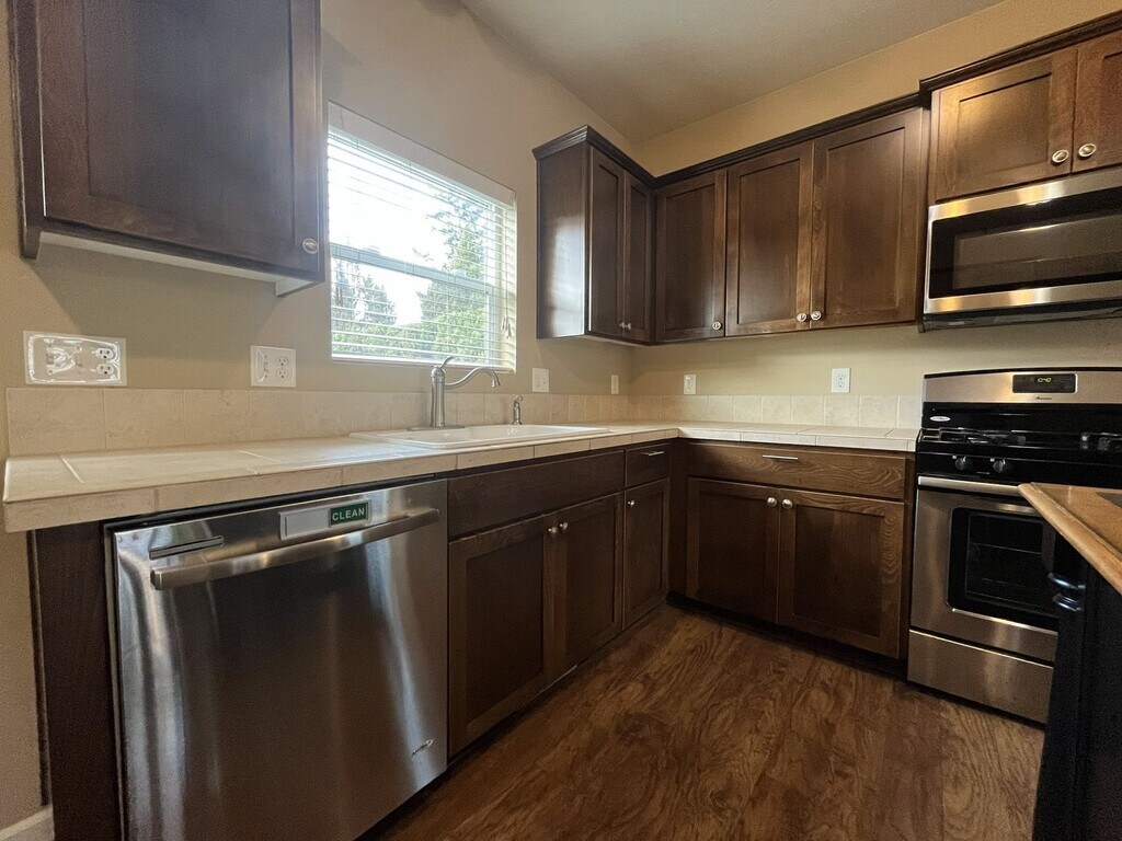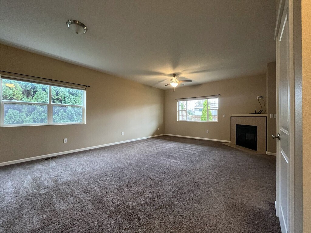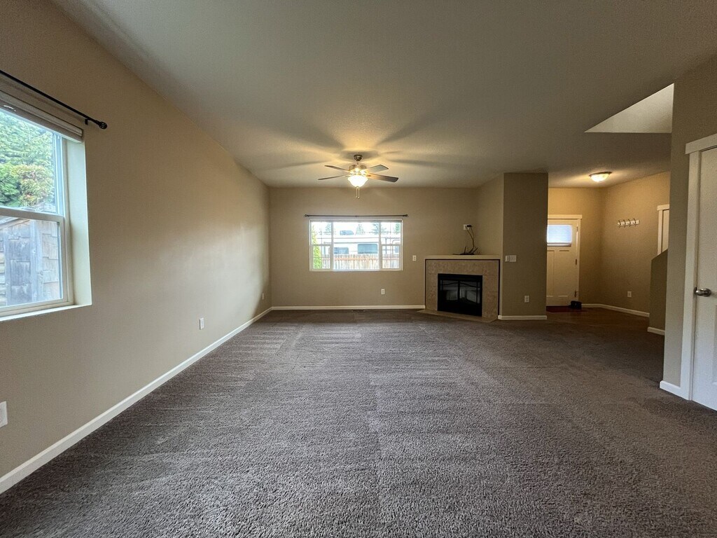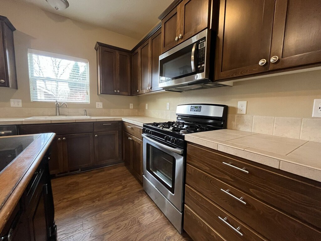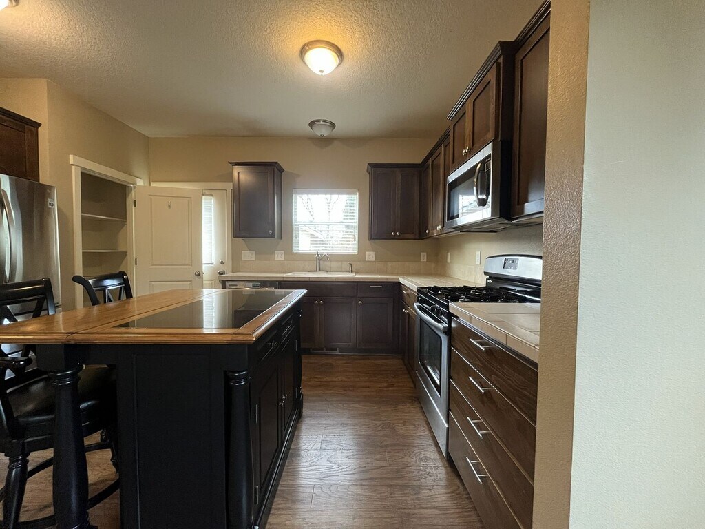This well-designed four-bedroom, two-and-a-half-bathroom home offers 1,768 square feet of comfortable living space with excellent functionality and outdoor appeal. A long driveway provides ample parking and leads to an attached two-car garage, while a covered front patio and small garden area create a welcoming entry. Inside, the entryway features hardwood flooring, an open layout, and a staircase that anchors the space. Just off the entry is a flexible open area ideal for a desk, reading nook, or additional seating. The main living room is spacious and carpeted, featuring bright windows, a cozy fireplace, and a layout that easily accommodates a variety of furniture arrangements. Between the living room and kitchen is space well suited for a dining area, creating a natural flow for entertaining and everyday living. The kitchen is modern and generously sized, equipped with updated stainless steel appliances including a wide French-door refrigerator with freezer drawers, a gas stovetop and oven with a mounted microwave, a dishwasher, and a white ceramic double-basin sink. Light-colored tile countertops pair beautifully with dark wood cabinetry, while abundant counter space and storage surround the kitchen. A central island with a wood countertop provides additional prep space and casual bar seating, and a closet pantry offers convenient food storage. Also on the main level is a carpeted bedroom and a half bathroom, making this space ideal for a home office, guest suite, or hobby room. Upstairs, the carpeted second level hosts the remaining three bedrooms. The primary suite is long and spacious, featuring a walk-in closet and an en suite bathroom. The bathroom includes a double vanity stretching the length of the wall with a matching long mirror, linen storage, and a step-in shower with glass sliding doors. A laundry room is conveniently located next to the primary suite, along with a second full bathroom. Down the hall, two additional bedrooms offer carpeted flooring, ceiling fans, bright windows, and generous closet space. Outside, the backyard provides a comfortable outdoor retreat with a patio, grassy area, and small trees and bushes lining the fence, offering privacy and plenty of room for gardening or outdoor enjoyment. **Open Application Period 12/22/2025** Call or Text Our Leasing Agent to schedule a showing! English Speaking Spanish Speaking YouTube Link: Visit our website to apply and view other homes we have available! Do you need property management services? Maximize your income and cut your costs!