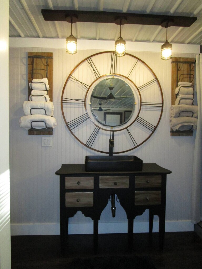 Discover the beauty of Lake Placid from this quaint cottage. The open concept 800 square foot newly remodeled retreat was once a woodshop and retains much of its original charm but includes all of the modern conveniences. A 6 foot farm house kitchen sink, refinished workbench counters, 8 foot bowling alley lane island with machinist stools, and a cute "truck front" wine bar offer the industrial quirk, while top of the line cookware and amenities in your fully stocked kitchen, shower with rainfall showerhead, electric fireplace, and comfy furnishings offer a retreat experience. We of course offer AC, heating, WiFi, internet based television, a grill, and a washer dryer for your convenience. All utilities and lawncare are included. We are available monthly or longer term, so this home is perfect for longer vacations, job contracts, or interim stays. Seasonal rates apply Close proximity to 4 of our our finest lakes , the best fishing and water sports galore, excellent area Golf Courses, and a few miles from charming downtown. Lake Placid is known as "The Town of Murals" and "The Caladium Capital of the World" . Bring your toothbrush (and boat and golf clubs if you like) and relax at The Lake Grassy Workshop Retreat! Please note: This is an large open concept efficiency without doors to rooms. We are appropriate for one person or two people that really like each other. Pets are welcome with prior approval. We have 2 dogs and a kitty on the property in a separate fenced area of the property. There is a large parking area in front of the retreat if you desire to bring your boat or RV. Third bay garage is for owners private storage. State of Florida hotel tax applies to rentals under 6 months and one day. Owner is a Licensed Real Estate Agent.