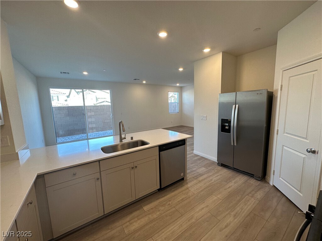 Breathtaking corner lot Home in Beautiful Inspirada community with lots of amenities like Pool, spa , Base Ball and Soccer pitch, Tennis court, Play ground, park, etc.. Very demanding 2 story floor plan with Bed and Bath downstairs. Luxury Vynyl on entire home with exception of bedrooms and stairs and loft that are carpet. Gourmet kitchen with SS appliances included. Kitchen countertop furnished with gorgeous quartz counter top which is open to family room. Sliding door to the back yard. Quartz counter tops in bath room. Enjoy your evening by relaxing in the cozy and well maintained side yar ; which include artificial grass, pavers, trees, etc.... Rare to find at this price point. Don't wait and apply before it is gone