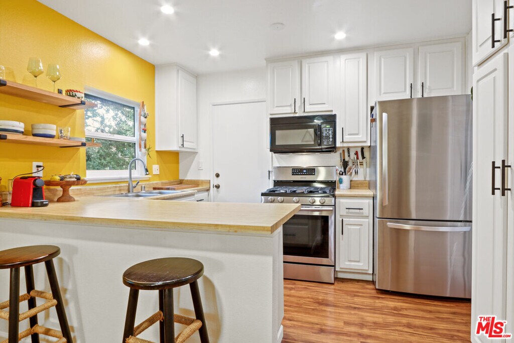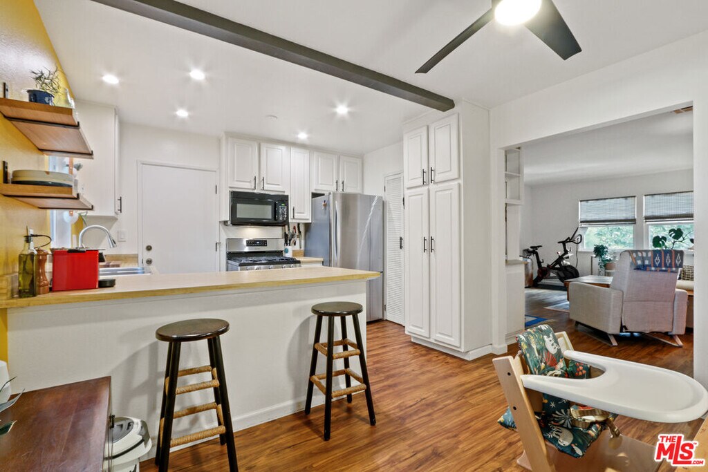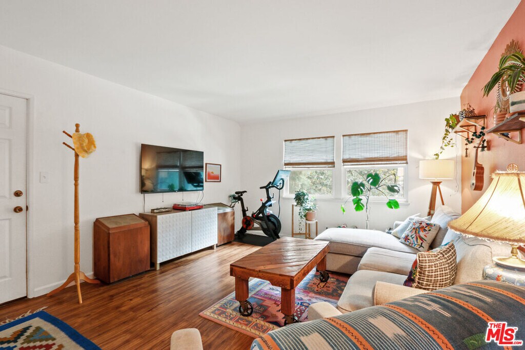 Light and bright top floor 2bed + 1.5bath condo in Cameo Woods. This spacious 903sf unit has tree top views and both east, west & south facing windows. Beautifully updated, the open living room boasts newly updated vinyl plank flooring and vinyl windows. The kitchen features stainless steel appliances, modern floating shelves plus lots of cabinet space, extra storage and pantry space, + separate dining area as well as a combo washer/dryer. 2 spacious and light filled bedrooms with large closets and a closet system. More upgrades include the recently remodeled full bath with new vanity, oversized coat closet with shelving + a designer 1/2 bath just outside the 2nd bedroom. 1 car private garage parking included. This gated community with 24/7 security features a plethora of green space, a pool, two hot tubs, a dog park, community garden, clubhouse and a tennis court. Just a few blocks to the Expo line, Target, Whole Foods, Cliffs of Id & Gym Tonic. Close to Culver City shopping like Trader Joes, Monroe Place, Juliet, Breakaway Cafe, Sephora, Salt & Straw, Culver City Farmers Market, Hi Lo Liquor, Pasta Sisters and more. Feel like a hike? There's Kenneth Hahn Park, the bike path to the beach, Culver City stairs and Baldwin Hills Scenic Overlook just around the corner. Apple, Amazon, Nike and HBO are all conveniently located close by. Minutes to DTLA, Santa Monica, LAX and Hollywood. Don't miss out on all this condo has to offer! MLS# 25608981