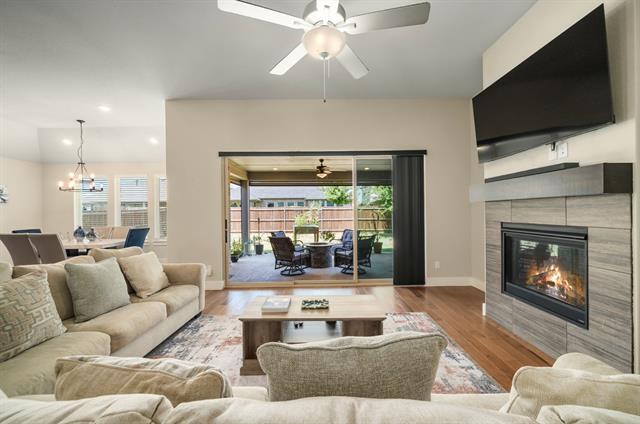 For Lease and For Sale Lease furnished with current furniture for $3,420 Step into refined Texas living in this stunning Tri Pointe Home, showcasing the highly coveted Bryson floorplan in the desirable Creeks of Legacy, zoned to award-winning Prosper ISD. Designed with intention and style, this residence seamlessly blends modern sophistication with everyday comfort. Rich hardwood floors flow throughout the spacious three-bedroom layout, setting the tone for the open-concept design that effortlessly connects living, dining, and entertaining spaces. At the heart of the home, the chef-inspired kitchen impresses with granite countertops, stainless steel appliances, a gas range, and abundant cabinetry and pantry storage—perfect for both casual nights in and hosting guests. Enjoy the fully upgraded kitchen with soft close cabinets, upgraded lighting fixtures, and modern open concept. Wall-to-wall retractable sliding doors open to a private backyard retreat, where an expansive patio with automatic electric blinds creates true indoor-outdoor living—ideal for morning coffee, evening gatherings, or relaxing weekends at home. The primary suite is a serene escape, featuring a spa-like en-suite with granite countertops and a luxurious walk-in shower. Two additional bedrooms provide comfort and privacy, while the flexible bonus space adapts easily as a home office, playroom, or lounge area. Low-maintenance living meets everyday convenience just minutes from the new HEB, with shopping, dining, and entertainment close by. Seller is open to selling the home fully furnished with a Non-Realty Addendum, offering a rare move-in-ready opportunity. A home that truly delivers style, functionality, and location—this is one you don’t want to miss. See Transaction Desk for document regarding the home furniture available. See private remarks for more details.