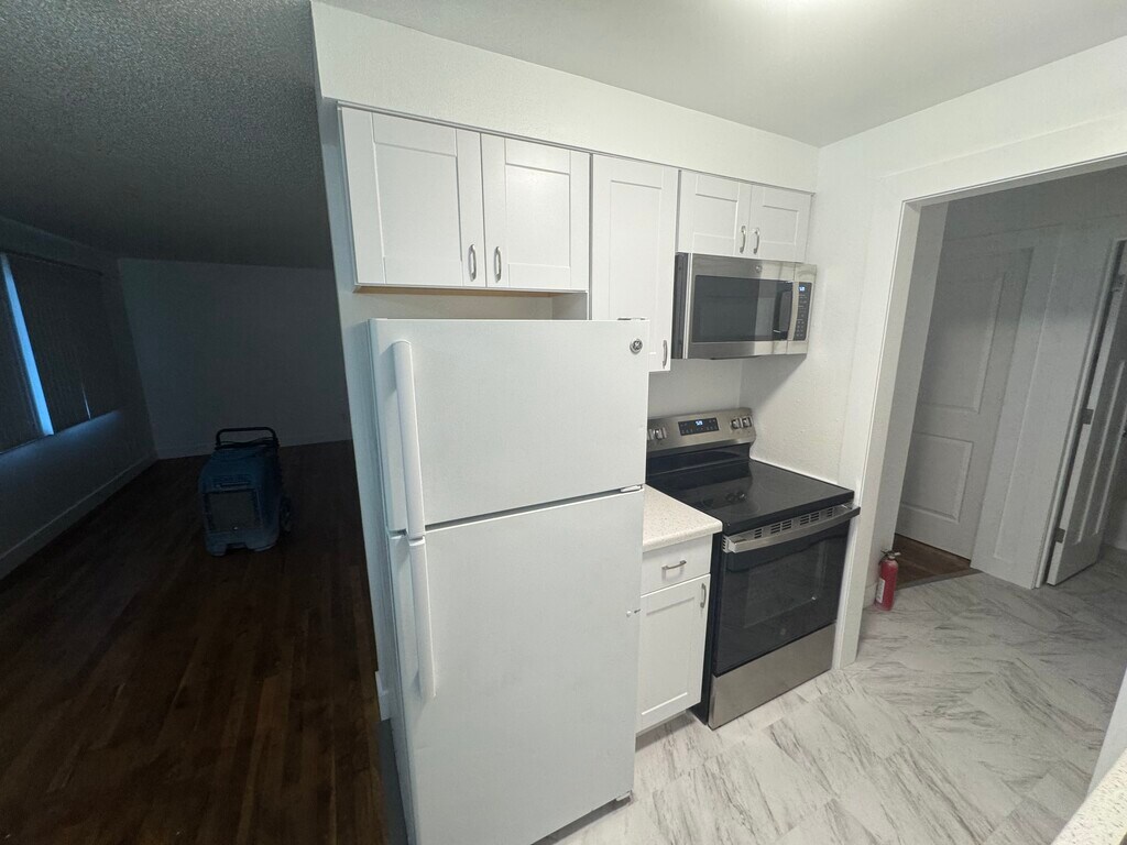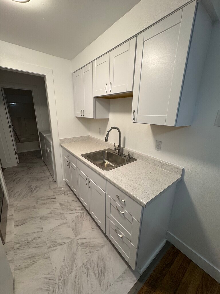 Property Id: 995312 This property is a 2-bedroom, 1 bath 800 sqft. situated in a triplex building and is the end unit. The property has a large yard, partially fenced with an opening at the entrance, and ample off-street parking for all units. Each unit has a dedicated patio area in the front yard. This unit was completely remodeled. The renovation included a complete kitchen remodel including all new cabinets, flooring, counter tops, sink, oven & microwave. Fresh paint and trim throughout entire unit. Washer & Dryer are included in the unit and were also replaced during the remodel. There is no garage or outside storage. Currently offering 6 month or 1-year lease options.