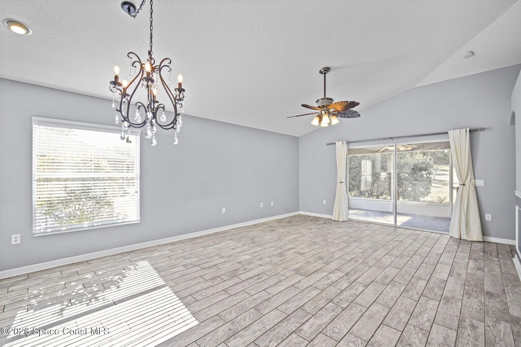 Welcome to this well-maintained 3-bedroom,2-bath home with a 2-car garage located in the desirable Capron Trace subdivision. This inviting home features tile and vinyl plank flooring throughout for easy maintenance and a cohesive look. The open kitchen offers a functional layout with a center island,perfect for everyday living and entertaining. Vaulted ceilings enhance the spacious feel of the main living areas,while a built-in bookcase adds character and charm. Step outside to the screened-in porch,ideal for relaxing and enjoying Florida living year-round. Conveniently located near shopping,dining,and major roadways,this home is a great opportunity in a sought-after community. MLS # 1068932