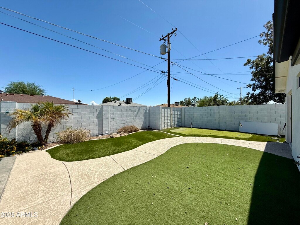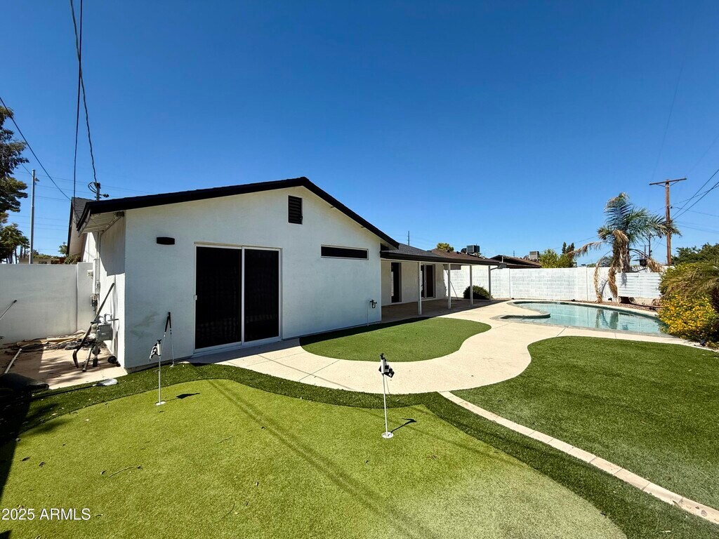 *$300 On Q Move In Credit with a 12 Month Lease* This 1,869 SQ FT single-story home offers 4 bedrooms and 2 bathrooms on a spacious 6,506 SQ FT lot. The kitchen comes equipped with modern appliances including a refrigerator,oven,microwave,dishwasher,and garbage disposal. The living areas feature a blend of carpet and tile flooring,ceiling fans,blinds,and a versatile bonus/recreation room. The primary suite includes ample closet space and a private ensuite bath,while the additional bedrooms are well-sized and share the remaining bathrooms. A separate laundry area comes with a washer,dryer,and water heater for convenience. The backyard is designed for both relaxation and entertainment with a private pool,covered patio,and a unique putting course.