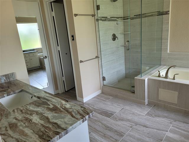 This beautiful, spotless home boasts 4 bedrooms and 3 full bathrooms and is located in the Plano West school district. This spacious single-story home offers a fantastic layout with a three-way split between the bedrooms. The master bedroom and bathroom are separate from the 2nd and 3rd bedrooms that share a bathroom, and the 4th bedroom with its own bathroom. It includes two living areas, a formal dining room, a beautifully updated kitchen, and informal dining area with granite countertops, flat cooktop, wall oven, 3 rack dishwasher, and designer sink. The backyard features a large covered patio. The Biltmore Swim and Racquet Club Estates community offers a pool, playground, and tennis courts. The location is incredibly convenient for most workplaces, shopping, dining, and highway access. There's also a greenbelt trail within walking distance.