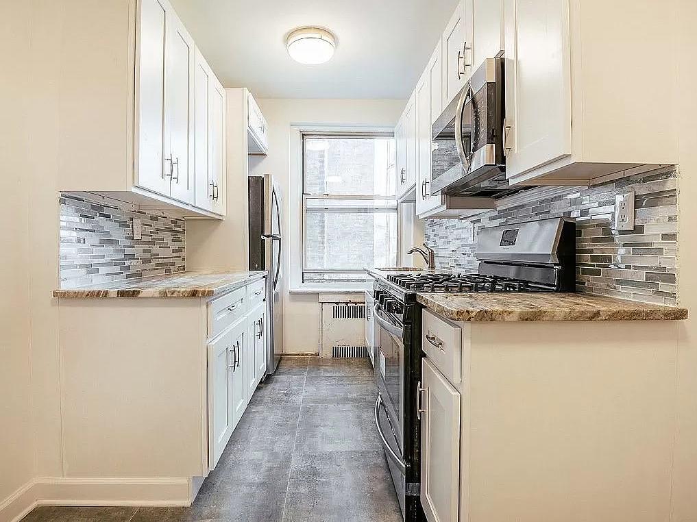 This immaculate, fully grenovated 1-bedroom, 1-bathroom home is perfectly positioned directly on Kings Highway! This is such a pretty apartment, with its extraordinary windows and loads of natural sunlight, it's truly a gem. This beautiful place is ready to move right in, with its high ceilings and high-shine hardwood floors, spacious living area, and large sun-drenched bedroom; it's a very clean and cozy apartment. The newly remodeled kitchen is lovely and filled with state-of-the-art stainless steel appliances and fashionable granite counter tops.