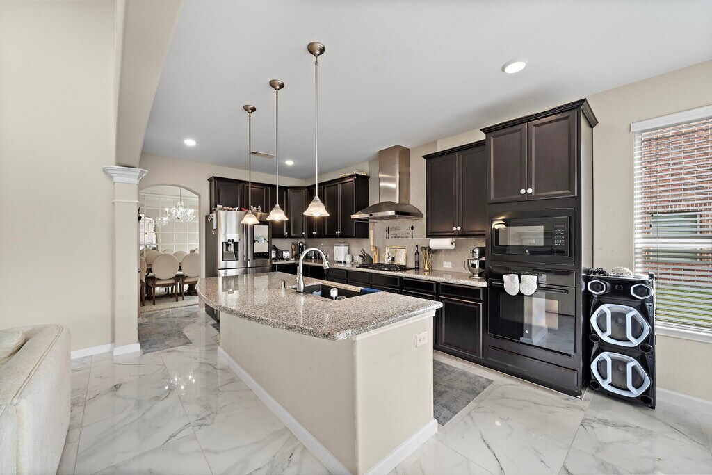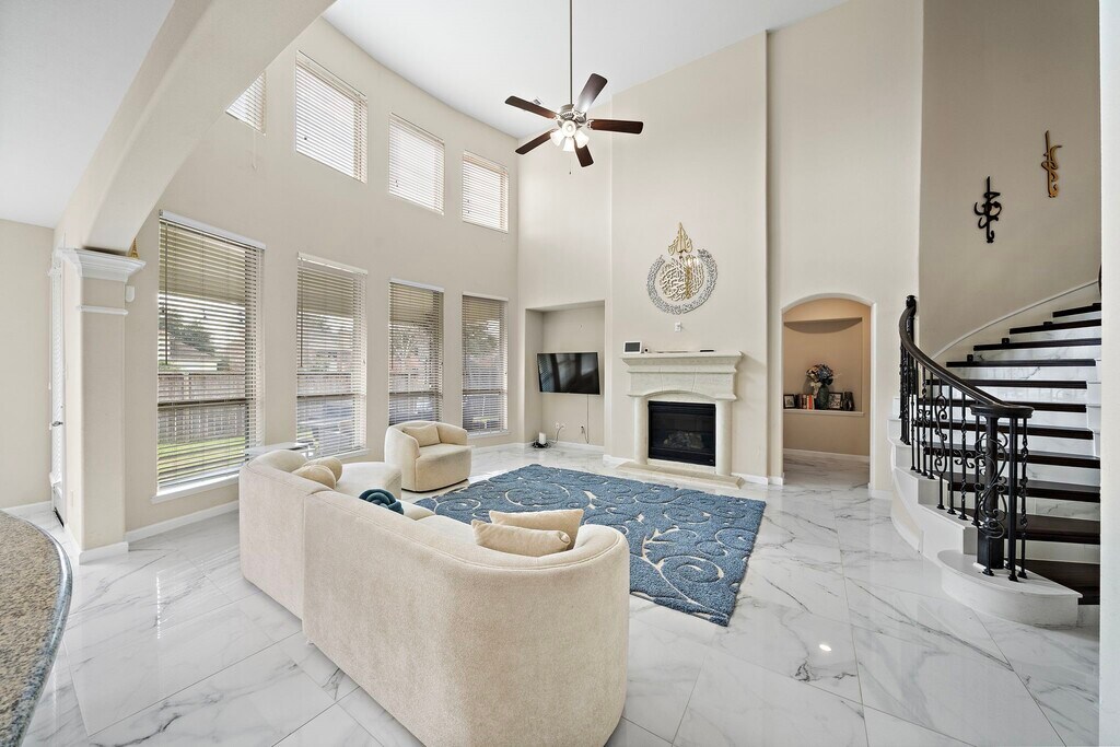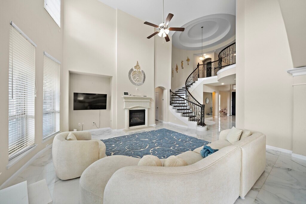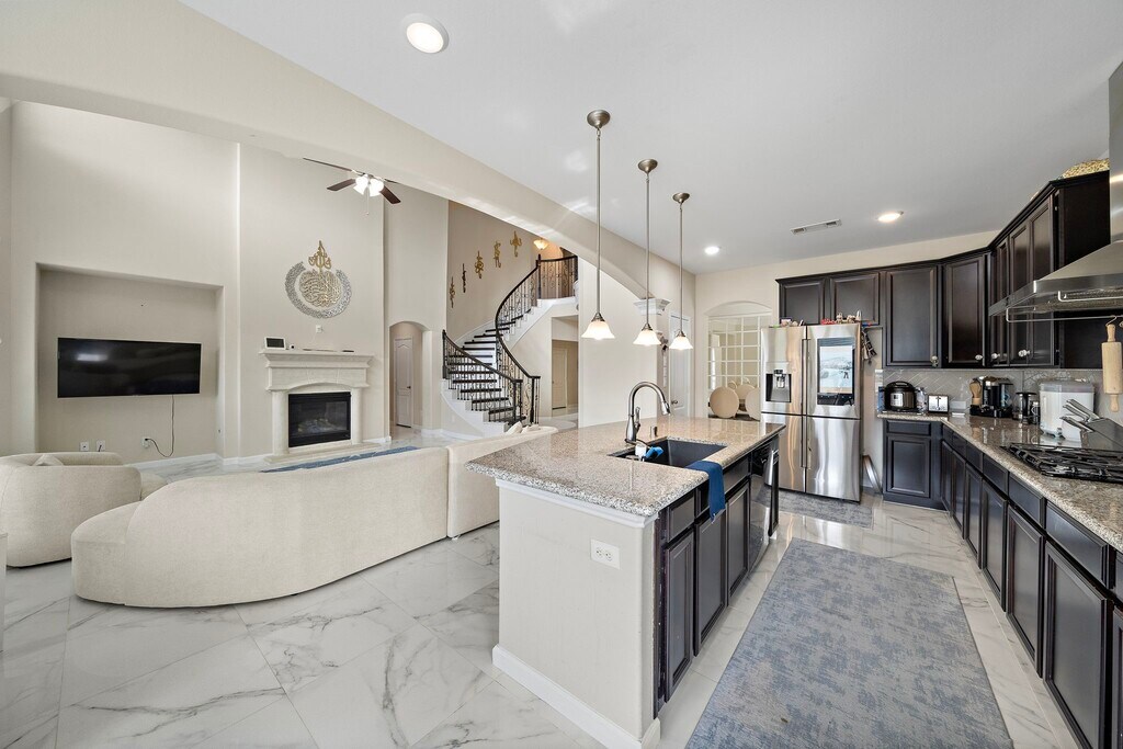 This spacious and elegant home boasts a grand foyer featuring an elegant staircase. The home features high ceilings and a large,bright kitchen that is designed for both function and style,with a generous island perfect for cooking or entertaining,complemented by a cozy breakfast dinette. A formal dining room offers a refined space for meals and gatherings. The large master suite is conveniently located downstairs. Upstairs,the game room provides an ideal spot for fun and relaxation,while the media room promises a dedicated space for movie nights or home theater experiences. The entire downstairs has been beautifully remodeled with marble-look porcelain flooring,creating a modern,sleek aesthetic that ties the home's luxurious feel together. The blend of sophisticated design and functional spaces makes this home perfect for both everyday living and special occasions. MLS# 5626250