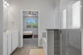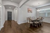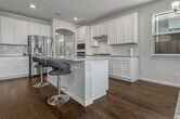 The first floor features a spacious primary bedroom with a luxurious en suite, a separate guest suite, and an enormous great room with a dining room, breakfast area, living space, and a gourmet kitchen. The second story has two more bedrooms and a full bath as well as a large loft area. The home is on a beautiful lot overlooking green space, nearby all the Trinity Parks amenities