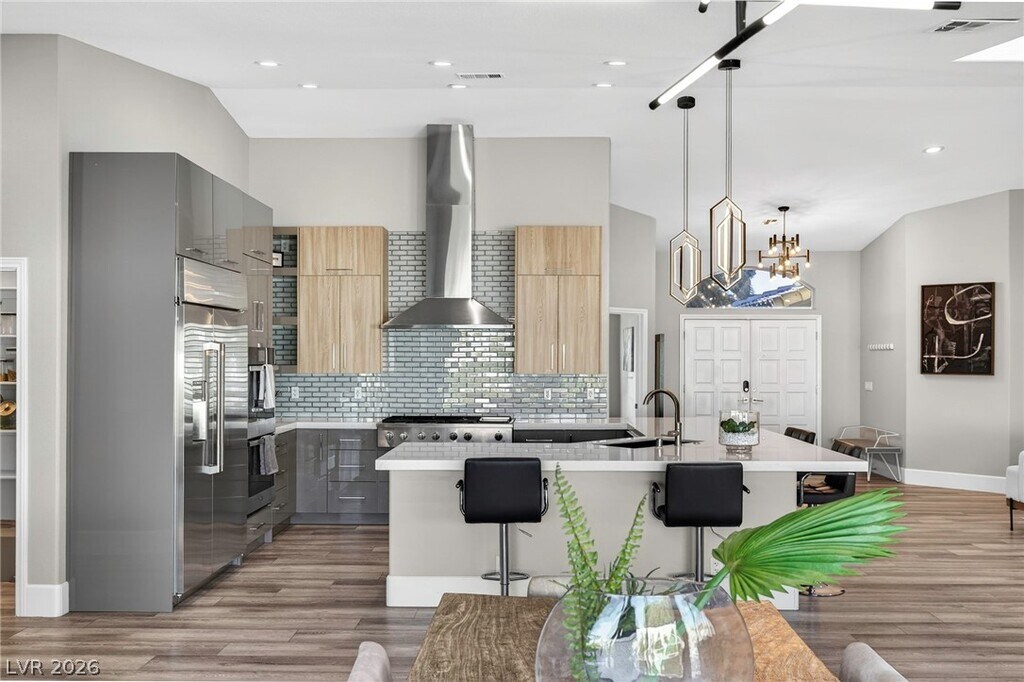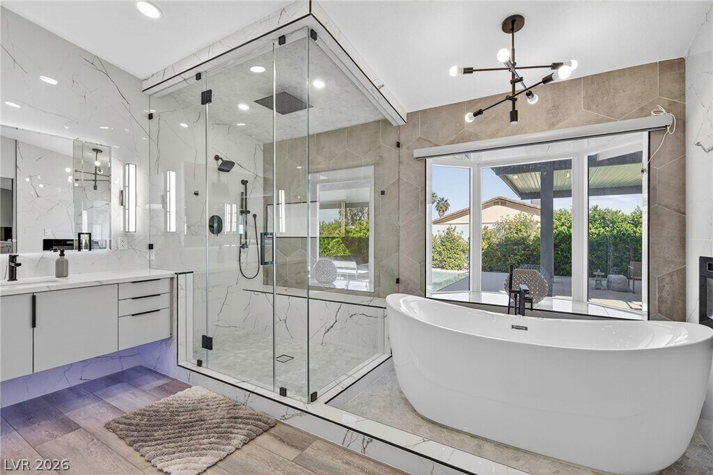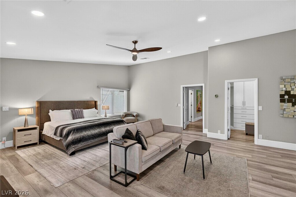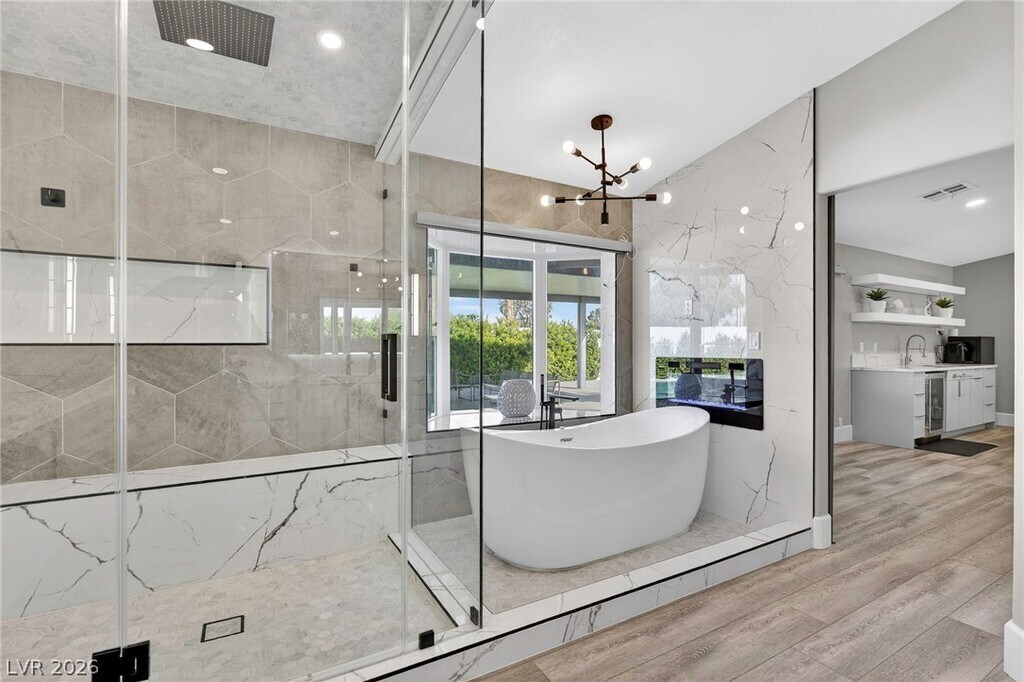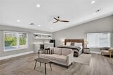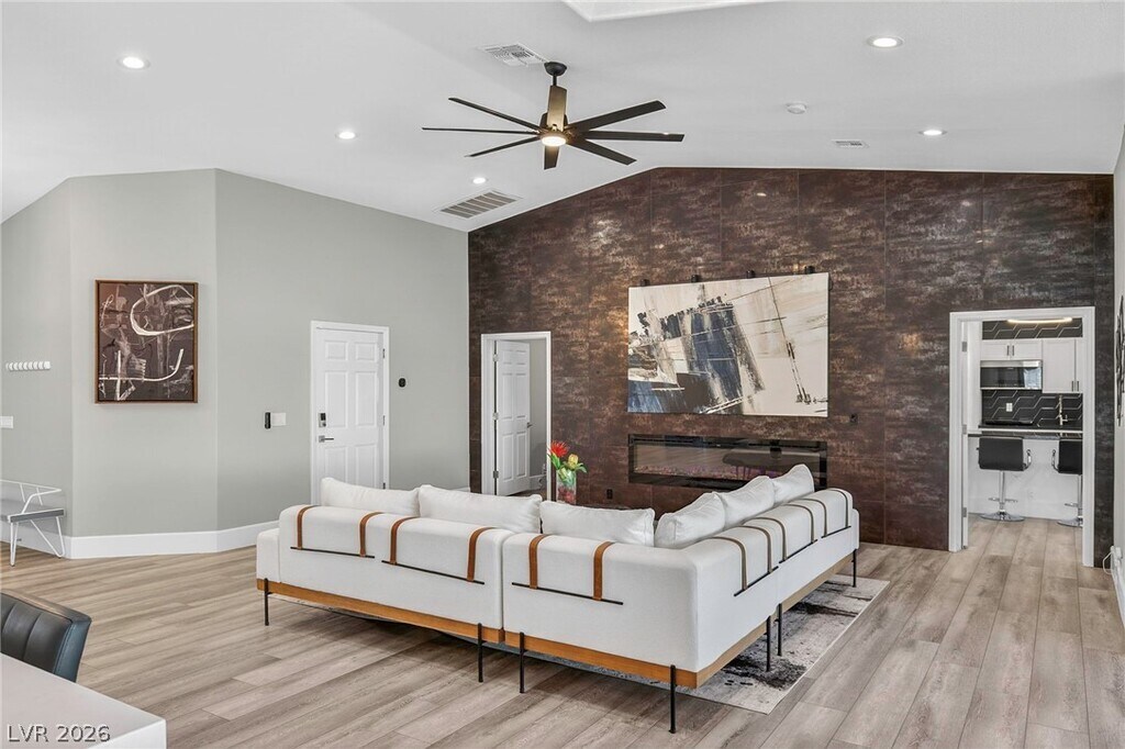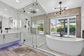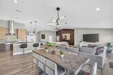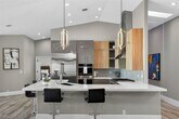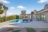 FULLY FURNISHED single-story home on a rare cul-de-sac lot with no HOA and RV Parking! Fully renovated in 2022, this designer residence has amenities like a theater, gym, and dedicated office, and showcases soaring vaulted ceilings, skylights and expansive open living spaces filled with natural light. The dramatic living room features floor-to-ceiling tile and a sleek electric fireplace, while two 12-ft sliding doors create seamless indoor-outdoor living to a resort-style backyard with an infinity-edge pool, elevated spa, and large covered patio. The gourmet kitchen with custom cabinetry, quartz countertops, & stainless steel appliances. The oversized primary suite offers a private coffee bar, and walk-in closet. The primary bath has a freestanding jetted tub, walk-in shower, floating vanities, and luxury smart toilet. There is a multi-gen room with kitchenette & bathroom (currently set up as a gym, but can be converted into a 4th bedroom). 1/2 acre lot with RV parking + 3 car garage!