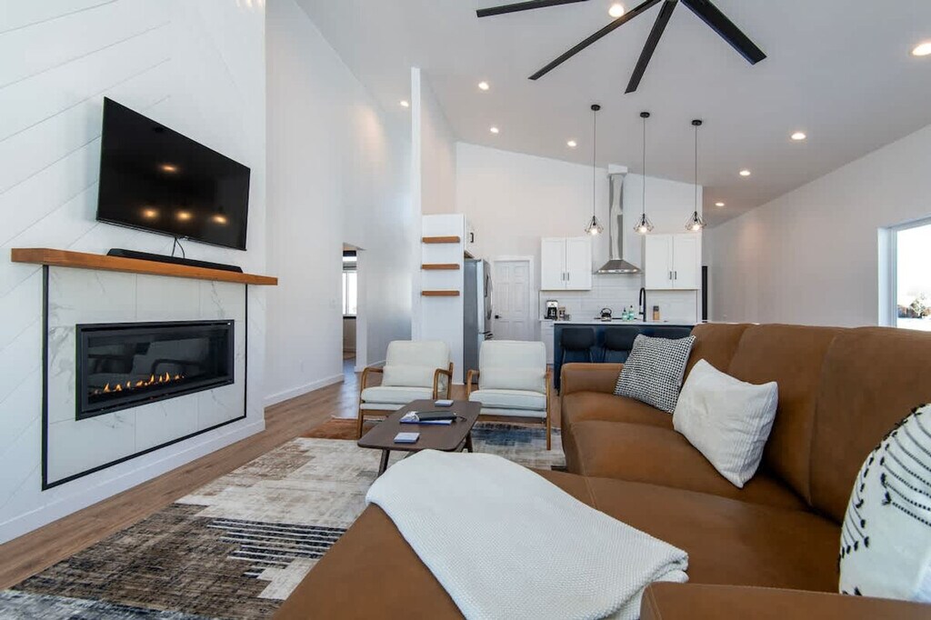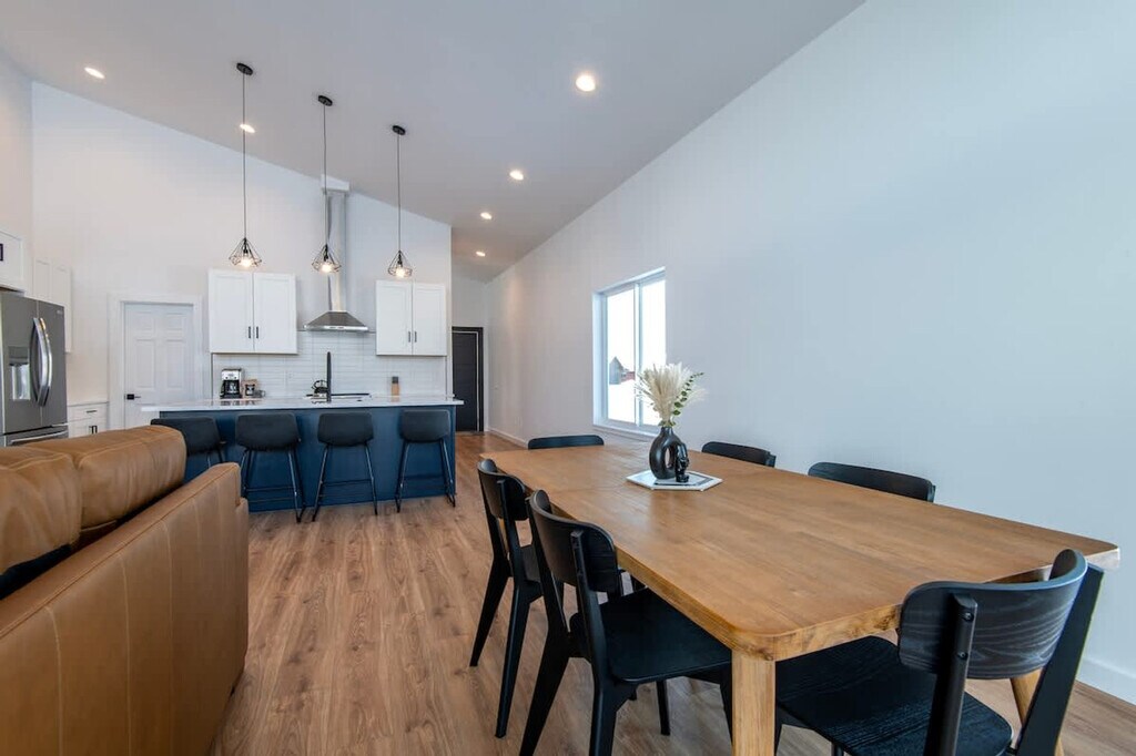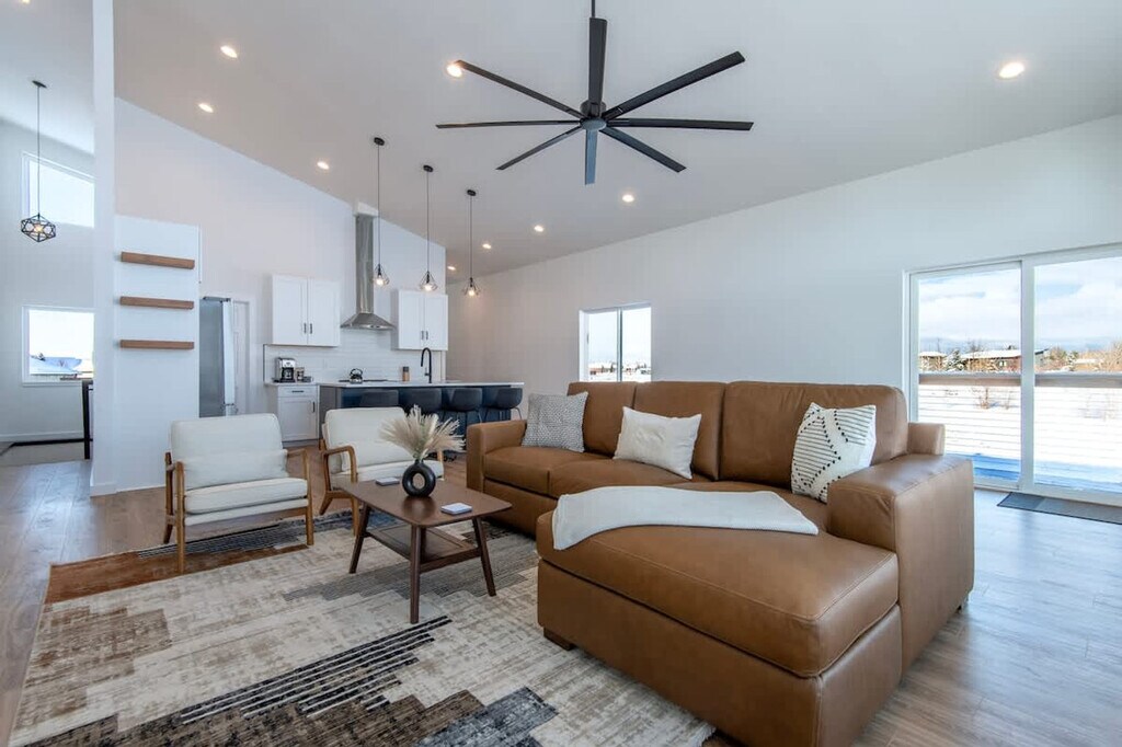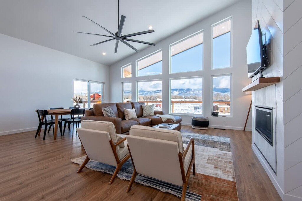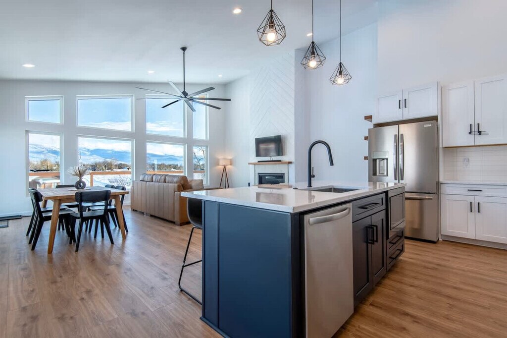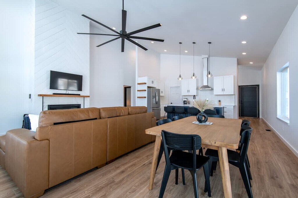 Welcome to a modern mountain escape at Targhee Terrace, where high-end comfort meets breathtaking views. This home offers an experience designed with all the amenities you need and instant access to some of America's most stunning landscapes. Feel at home in this virtually undiscovered mountain town that places you in the heart of it all. Imagine waking up to sweeping mountain views from every room and stepping out from your master en-suite to a 450-sqft deck. Enjoy your morning coffee knowing you’re just steps away from hiking and biking trails. The apartment features lightning-fast Wi-Fi and a fully equipped modern kitchen for those special post-adventure meals. The bright, open-concept spaces and contemporary decor provide room to relax, entertain, and recharge. Enjoy a 65-inch smart TV, classic arcade games, and board games in the rec room. For fitness enthusiasts, there’s boxing and yoga equipment to maintain your routine. The property includes a large 2-car garage with ski and snowboard racks and two additional covered parking spaces. Located minutes from the best of Teton Valley, you are just 20 minutes from Grand Targhee Resort, offering world-class skiing and epic mountain biking trails. The Caribou-Targhee National Forest is only 15 minutes away, perfect for hiking, Nordic skiing, and fly fishing. Walk or bike into downtown Driggs to explore local shops, restaurants, and breweries, or gear up for day trips to Grand Teton and Yellowstone National Parks. The number of people at the property should not exceed the maximum sleeping capacity. Quiet hours are from 9 pm to 8 am, and no events such as parties or large gatherings are allowed. Smoking or vaping in the home or on the decks is prohibited, with an additional charge applied if any butts are found on the property. Exterior lights should be turned off at night to preserve the dark skies. Drive slowly in the neighborhood to respect children, pets, and wildlife. A maximum of three licensed vehicles is allowed in the driveway and garages. Snow machines, dirt bikes, or ATVs are not permitted in the subdivision or at the rental property. No fireworks are allowed on the premises. Keep all main entry doors locked when not occupied. Fines will apply for violations, including but not limited to smoking in the house or garage, failure to follow house rules, and mistreatment of the hot tub. A minimum $500 fine applies for smoking or vaping in the house or garage, violation of house rules, or failure to vacate at check-out time.