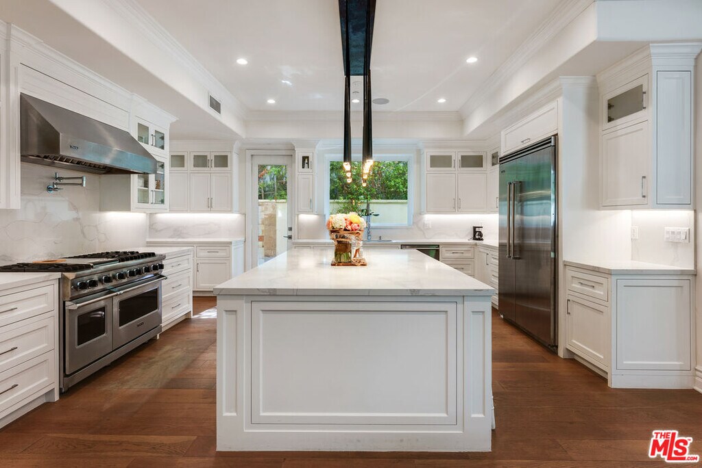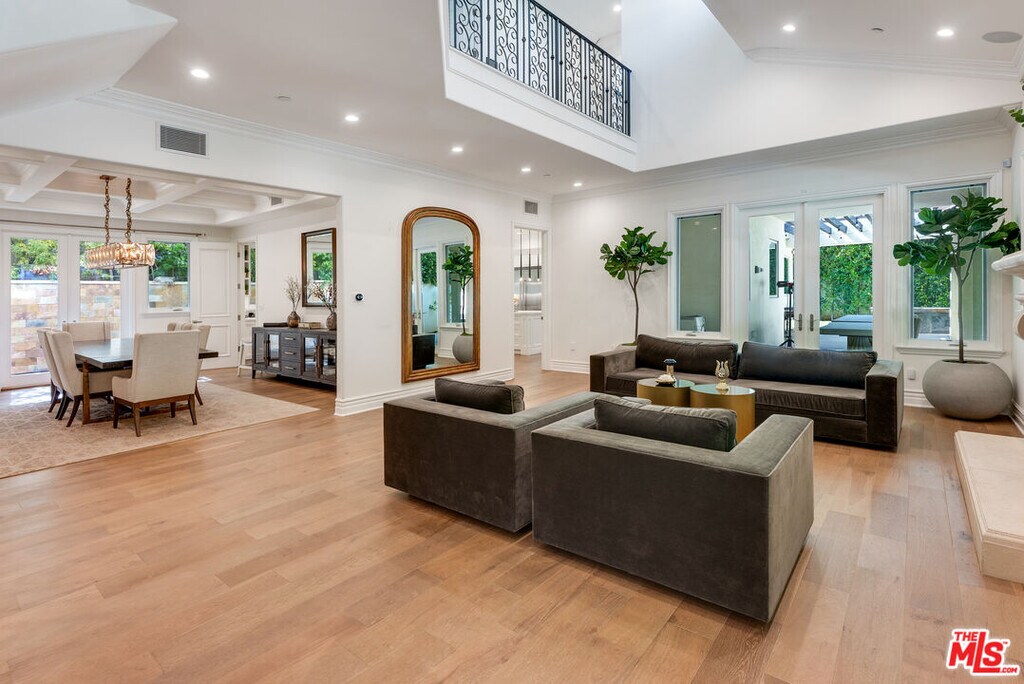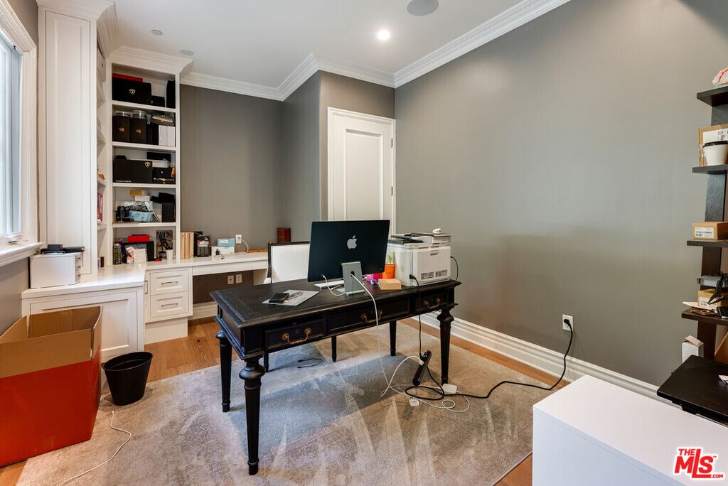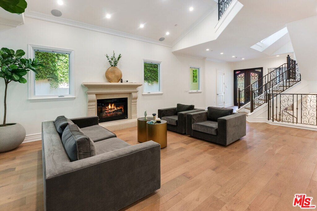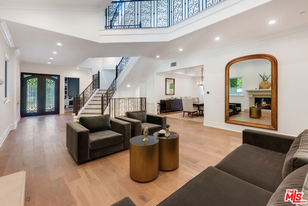 Newer beautiful Mediterranean with over 7000 sf is a fabulous family home. High ceilings, open spaces flow - formal living room, dining room with French doors outside. Hugh kitchen with center island and additional chef's kitchen open to family room, and outside entertaining areas with built-in barbecue and studio. Guest room and office on main level. Upstairs are 4 en-suite bedrooms, large primary with dual closets and fabulous bath. Rooftop deck with area currently being used as a gym. Lower level has a staff bedroom, fabulous movie theater with stadium recliner seating and a huge open space for play or entertaining. Easy beautiful living and walking distance to all the shops, and cafes that the heart of Brentwood offers. MLS# 25631253