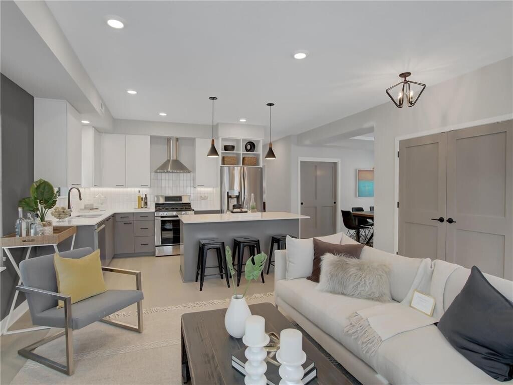 Top floor of this Fabulous East Harriet Triplex completed in 2021 featuring three spacious units! Each unit has been meticulously designed with high-end finishes throughout featuring private entrances leading to an open concept design with configurations to best suit your lifestyle of either three-bedrooms and/or two-bedrooms and office. The open layout boasts a fireplace, separate dining area, in-unit laundry, large closets, ample storage and individual HVAC systems. Engineered sound proof wall and floor separation is present in all units as well as cable wiring for all main rooms. Option is available to add a storage locker and/or bike storage in the dedicated garage space. **Photos are of similar unit**. Credit verification and background checks required. Owner is a local, licensed real estate agent in MN & WI.