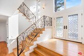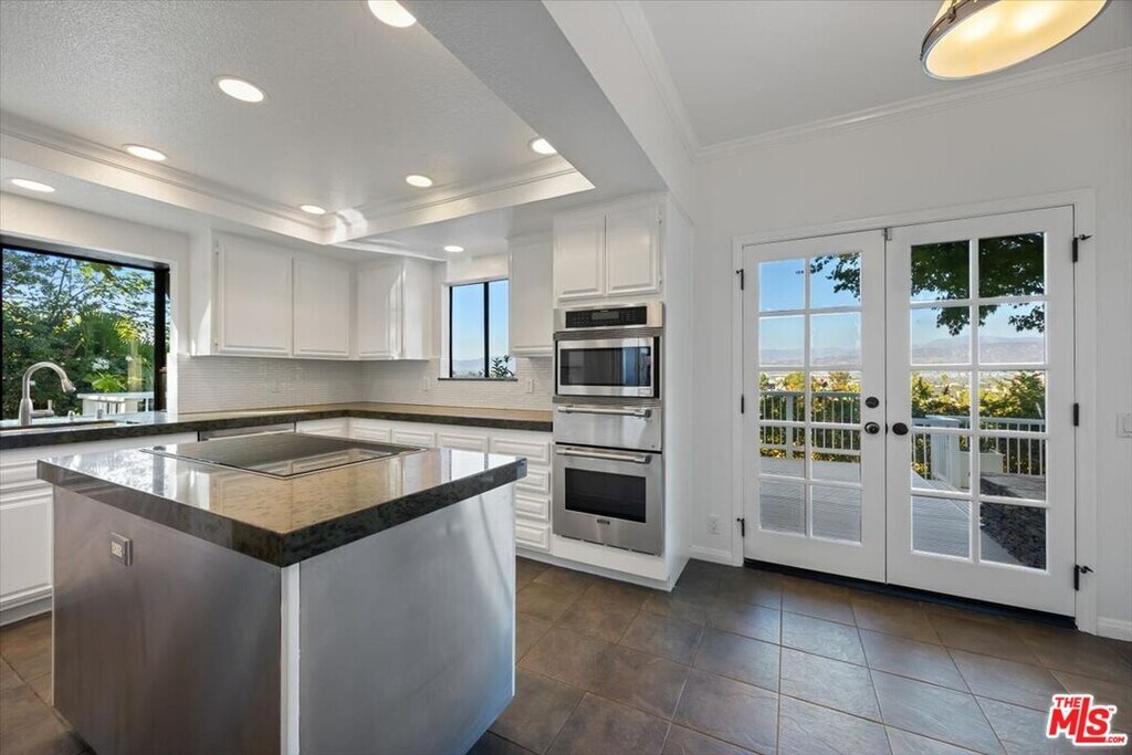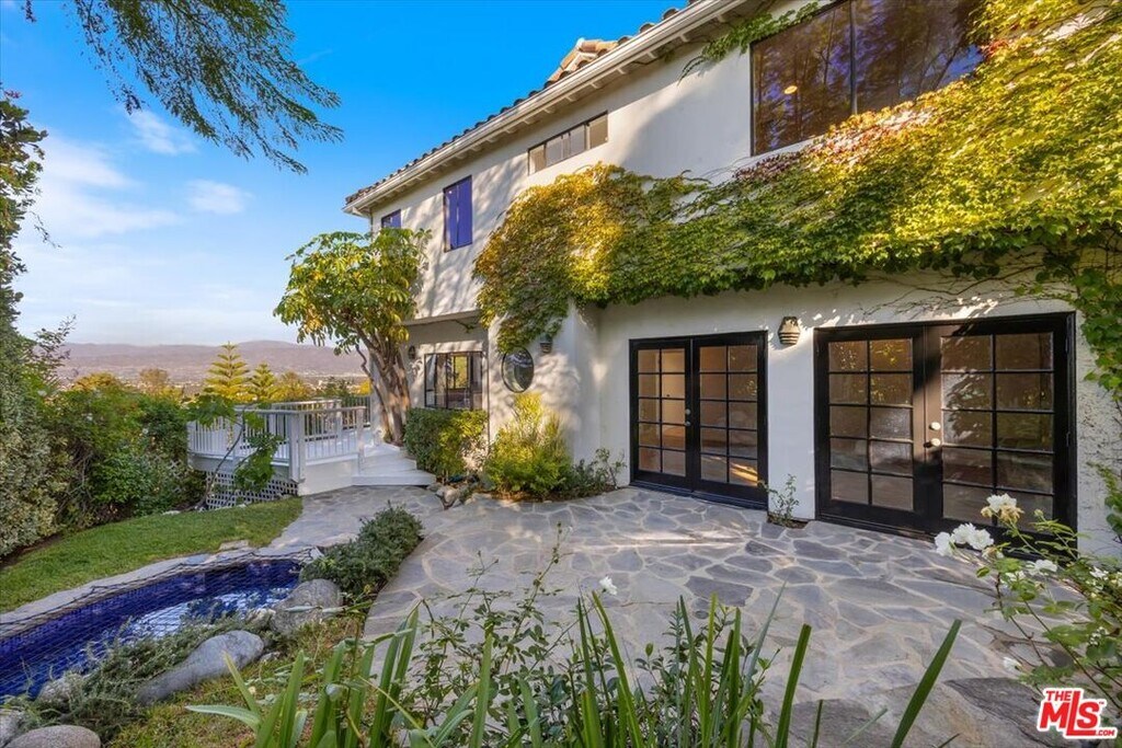 This exquisite 4-bedroom, 3.5-bathroom home, located in a 6 home gated community, high up in the serene hills of Studio City south of Ventura Boulevard. Enjoy breathtaking panoramic views of the Valley all the way to the Santa Susana mountains. The updated kitchen boasts high-end appliances, including a Bosch dishwasher, Thermador induction cooktop, oven, and microwave, a KitchenAid refrigerator and trash compactor. The formal dining room is filled with natural light and offers a gorgeous view of the outside deck, which overlooks the hillside and features a built-in BBQ and refrigerator perfect for gatherings with friends and family. The spacious living room features a charming brick fireplace. Designed for entertaining, the family room includes a river rock fireplace, wet bar, wine cooler, and French doors that open to an in-ground waterfall spa, easily controlled with Aquatic control technology, and surrounded by a lush grassy area. The enormous primary suite features a brick fireplace, dual walk-in closets, an en suite bathroom with double vanity sinks, a separate water closet, a walk-in shower, a large soaking tub, and a balcony with stunning valley and mountain views. Additional amenities include a 3-car garage with extra parking for three more vehicles on the driveway, an alarm system, Nest thermostat, and a ChargePoint Home Flex Level 2 EV Charger. Perfect for those seeking privacy and tranquility, the property is surrounded by large hedges and spa/fountain features, creating a peaceful escape from city life. Enjoy close proximity to trendy restaurants and chic boutiques, all within the desirable Carpenter School District. MLS# 25601173