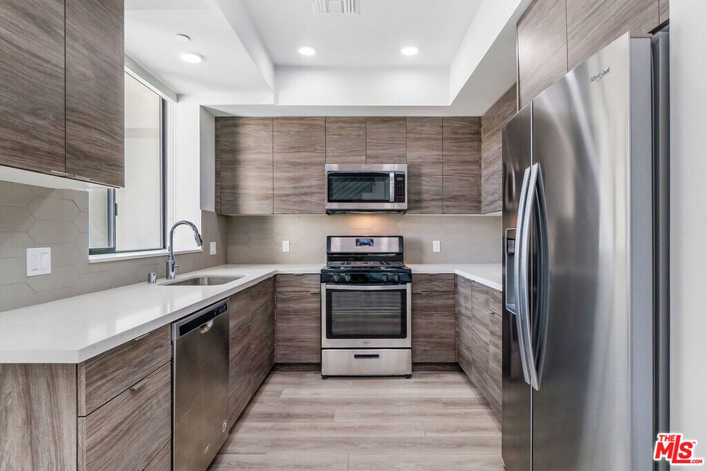 Pent house unit! Brand new contemporary apartment community with high end finishes. Live in the heart of LA with a vibrant social scene and the best restaurants. Custom tile & marble floor & bathrooms, wood vinyl floors, , custom kitchen cabinets, premium stainless steel appliances, Quartz countertops & kite tile backsplash, designer fixtures, backlit LED vanity mirrors, Nest thermostat, dual pane windows, sliding doors, custom 3 panel doors & hardware, , modern surface mount LED Lighting, large balconies with Beautiful Views, free Wifi in common areas, cctv cameras in the building, central air & heating, washer & dryer in Suite, EV charging station, gated underground parking , long term secured bicycle Racks, spacious walk in closets, high ceilings, secure access building, smart intercom system with camera and app Access, secure access elevator , trash chutes on every floor, rooftop deck lounge with Quartz floors, landscaping, Seating, Dining. Video: MLS# 25607965