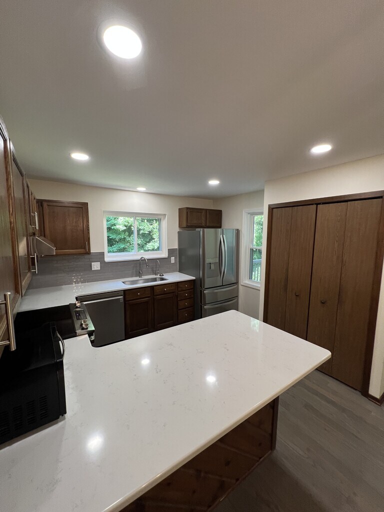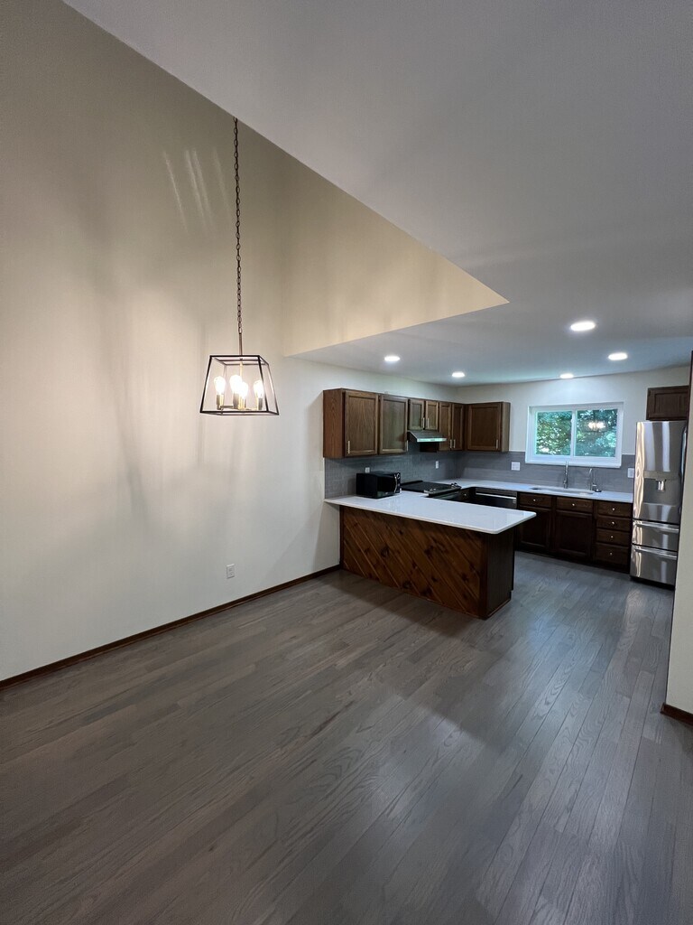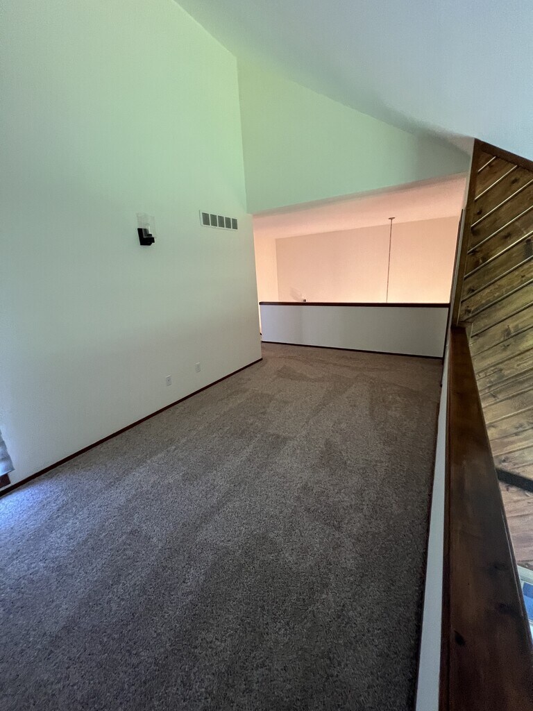 Nestled in a quiet, private area of Okemos, this stunning condo offers the perfect blend of comfort, style, and functionality. With an open floor plan and custom one-of-a-kind hardwood floors, this home welcomes you with warmth and elegance from the moment you walk in. The main level features a convenient half bathroom for guests, a spacious living area, and a gorgeous kitchen complete with granite countertops, stainless steel appliances, and plenty of space to cook and entertain. Step outside to a private patio just off the living room—perfect for relaxing or enjoying a morning coffee. Storage is no issue here, with abundant closet space throughout and a full open basement that includes a washer and dryer. The basement also features a walk-out patio area that backs up to a tranquil wooded view, offering a peaceful retreat right at home. Upstairs, you'll find a versatile loft/living room area, two generously sized bedrooms, and a second private walk-out patio off the primary suite. The luxurious ensuite bathroom boasts a double sink vanity, beautifully tiled shower, and an oversized rainfall showerhead for a spa-like experience. This condo checks all the boxes—privacy, space, high-end finishes, and modern comfort. Don't miss the chance to make it yours! HOA doesn't allow pets! Fireplace is for decoration and not for tenant use