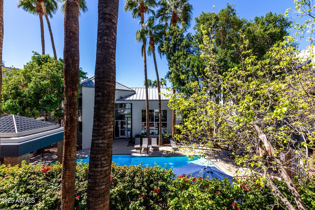 Check out this fantastic 2 bed,2 bath Condo now for sale in Palms Condominiums! Discover sizeable dining & living areas w/soft carpet,soaring ceilings,neutral palette,and a warm fireplace. The kitchen comes equipped w/ample cabinetry,built-in appliances,and a two-tiered peninsula w/a breakfast bar & partial granite counters. Continue upstairs and into the cozy loft w/elegant wood-look flooring,where you can spend a relaxing Sunday afternoon. The primary bedroom showcases private balcony access,a walk-in closet,and a full ensuite for added convenience. Nestled right next to the Community's resort-style pool and just minutes away from the heart of Phoenix,this is sure to be the home for you! Don't miss out!