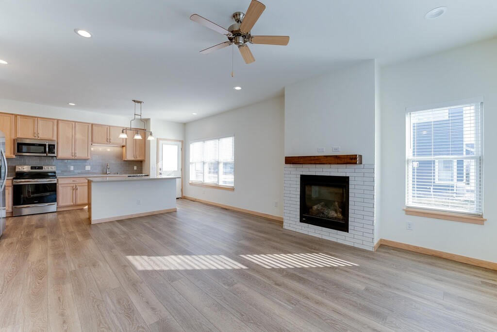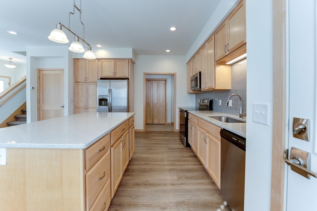 2 bed, 2.5 bath duplex-style townhome is nestled in Cross Plain's Creek Crossing at St. Francis. Features include an attached 2 car garage with extra storage in the full basement, tiled floors, stainless appliances, quartz counters and upgraded cabinets. Enjoy maintenance-free living with no shoveling or yard maintenance. No cats allowed. Photos are representative.