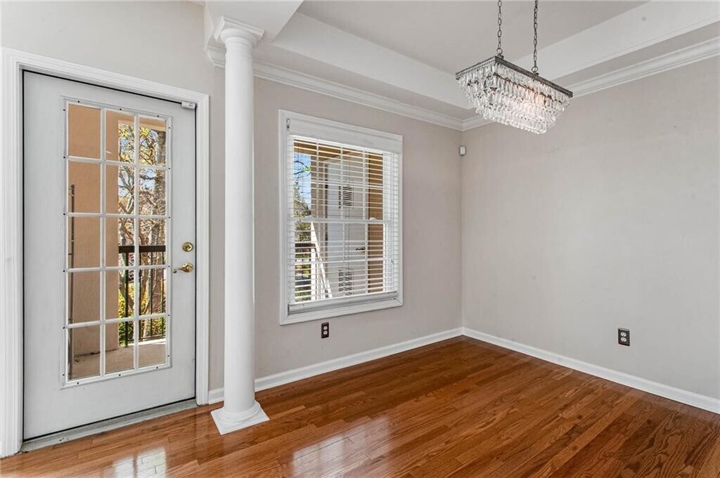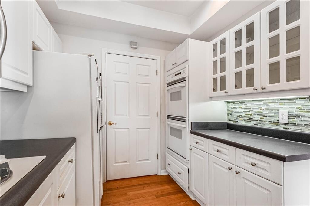 Beautifully maintained two-bedroom/two-bath light-filled corner unit condo with high ceilings in Habersham Oaks. The kitchen features a double oven and a gas cooktop with white cabinets and a separate laundry room. Hardwood floors in the main living areas. Gas fireplace in the living room. Owners' bath with double vanity,large soaking tub,and separate shower. Recessed lighting in the living room,kitchen,foyer,and hallway. Deeded parking space in covered garage with elevator. Some of the amenities and features of the property are a pool,a fitness room,a business meeting room,and a gated dog walk. Located in the Jackson School District with ease of access to restaurants,shopping,entertainment,and highways.