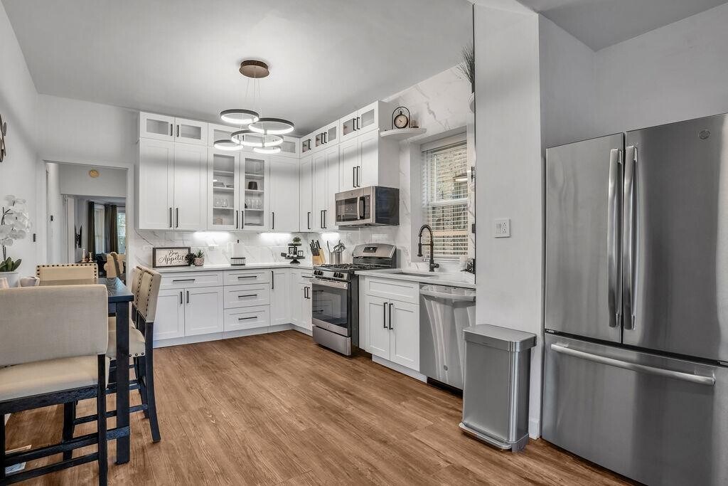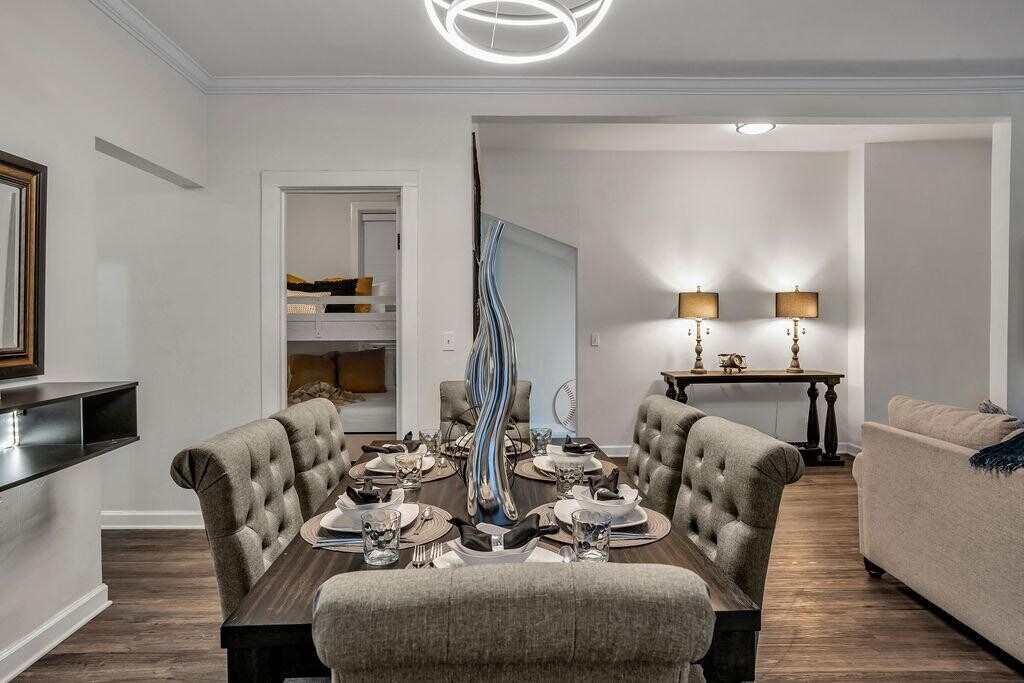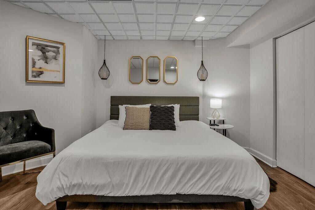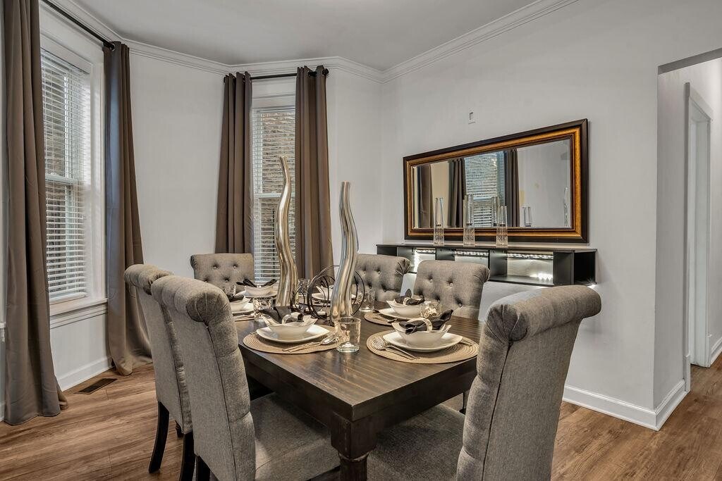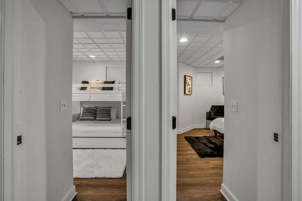 Fully furnished unit with First floor being classy living space, and Ground floor being the gaming area with ping pong, air hockey, over size connect four and foosball. This is an Airbnb unit, and we are renting it out for the month of January & February only. 3 Private Washers & Dryers. Room 1 has a queen bed. Room 2 has a Full over full over twin bunk bed. room 3 has a King bed. Room four has a Full over full over twin bunk bed Fully furnished, all utilities included: Chicago Graystone: Well-maintained, recently updated 3-Flat, one of the best values in the area. 1,320 square feet of living space, in-unit washer & dryer, central heating & air, oversized 6ft tall windows, 2” custom Faux Wood blinds. Tons of natural light. Beautiful hardwood floors, 12 ft ceilings, crown molding & other unique finishes & outdoor balcony. Walking-score of 94. Just 1 block from Wrigley Field, 1 block from Clark Street full of nightlife & entertainment, 3 blocks from the Addison red line...