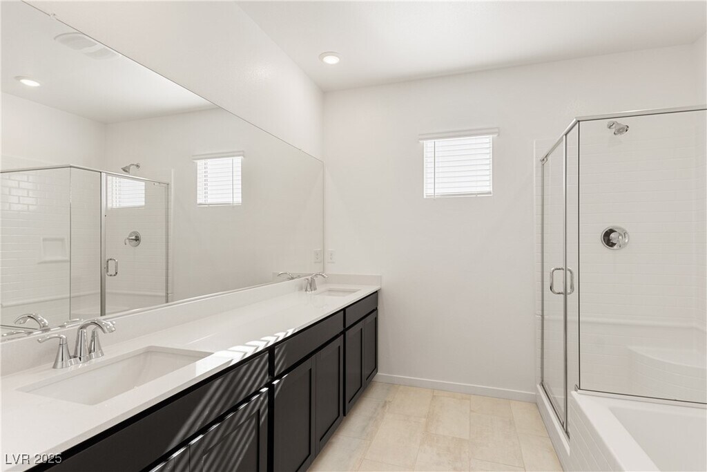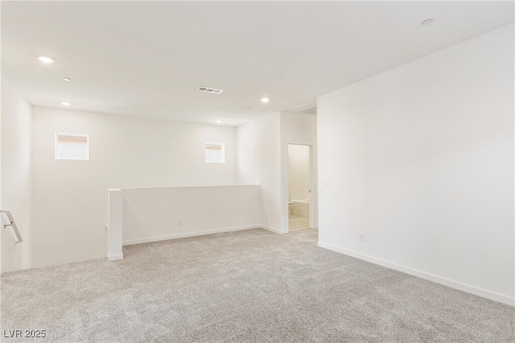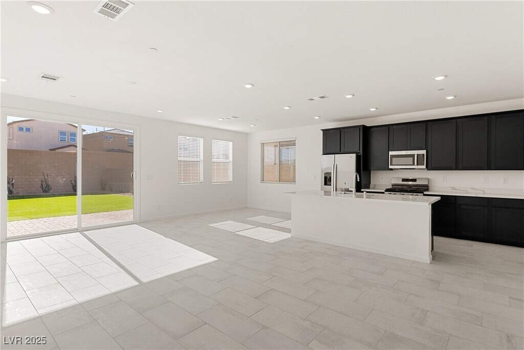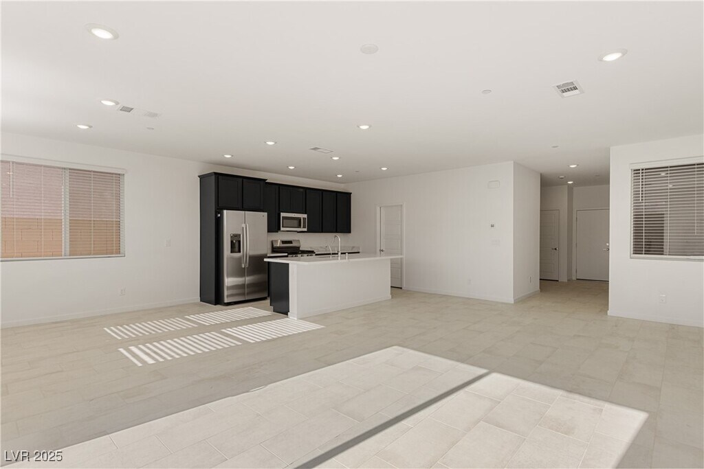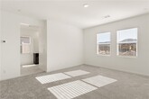Welcome to this brand-new home in the heart of Inspirada, offering modern comfort and thoughtful design throughout. The inviting foyer opens to a private den—perfect for a home office or study—while the open-concept main living area provides seamless flow for everyday living and entertaining. The stylish kitchen showcases upgraded Espresso cabinets paired with stunning Calacatta Idillio quartz countertops, stainless-steel appliances, and ample storage. Upstairs, a spacious loft adds flexible living space, ideal for a media room or play area. Four well-appointed bedrooms include a luxurious owner’s suite featuring a spa-inspired bathroom with dual sinks, walk-in shower, and generous closet space. Additional upgrades include Union Platinum White ceramic tile, Salerno Tonal Owl plush carpeting, and ceiling-fan pre-wires in select rooms and the living room. The home comes equipped with a washer, dryer, and blinds Be the first to live in this beautiful, move-in-ready home!