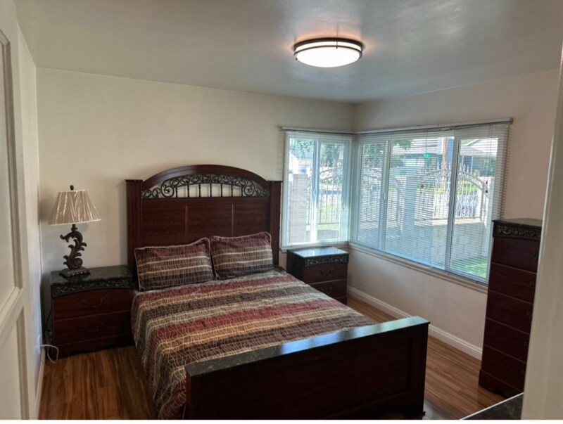 Property Id: 2201129 A gated, cozy and charming 2 bedroom 1 bathroom house on a quiet street of the best area of San Bernardino city. Close to 215 and 210 freeways, close to shopping centers and universities. Very safe and private-10 ft concrete block fence on the back of the house and 6 ft iron gate on the front. A beautiful renovated kitchen and bathroom with granite countertops and stylish cabinets. New central AC and heater. Laminate floor. New double pane windows. LG washer and dryer in the laundry room. New stainless steel fridge, dishwasher and microwave in the kitchen. The detached garage in the back is NOT included in the rent. There is a long driveway in front of that garage. The tenants can park a few cars on the driveway. If the owner needs to come and get some stuff from the garage, he will notify the tenants in advance. Deposit is $2600. The utilities are not included in the rent. Cats are ok but no dogs. Section 8 is ok.