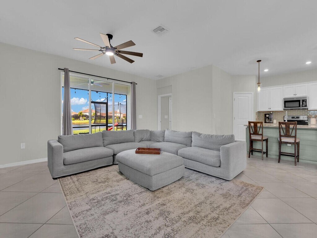 Welcome to this spacious 4-bedroom, 3-bath home in a resort-style community in Alva. Perfectly designed for comfortable living, this residence offers an open-concept floor plan with abundant natural light enhanced by tranquil water views that set a serene tone from the moment you walk through the door. The kitchen is the heart of the home, featuring granite countertops, stainless steel appliances, and a large island with seating, ideal for entertaining or family meals. The spacious primary suite offers a walk-in closet and an en-suite bath with dual sinks and a glass-enclosed shower. Two additional bedrooms provide versatility for guests, a home office, or family needs. Step outside to a screened lanai and enjoy peaceful views of the landscaped backyard — a relaxing retreat for morning coffee or evening downtime. As a resident, you’ll have access to River Hall’s resort-style amenities, including a clubhouse, pool, fitness center, playgrounds, and miles of scenic walking and biking trails. Optional golf membership is also available at the community’s championship course. Schedule your tour today!