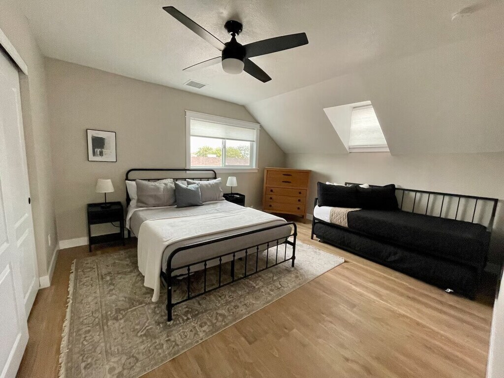 Welcome to your relaxed desert home base in sunny Phoenix, AZ. This cozy 2-story home is all about easy living, offering 2000+ square feet of living space with a large backyard. Tucked away in a cul-de-sac, this 4-bedroom, 3-bathroom gem is minutes from many restaurants, shopping, and hospitals. The enclosed backyard is perfect for pets and features an outdoor shower, heated stock tank pool, and space to enjoy the Arizona weather. This home boasts a fully stocked kitchen, complete with a coffee maker, and a super chill living area with a big couch and smart TV. The private backyard is perfect for sipping your morning coffee or winding down after a day in the sun. Enjoy the good vibes outside by kicking back in the backyard, firing up the grill, or enjoying Arizona’s famous sunsets. The property offers free driveway and street parking. Nestled in a quiet neighborhood in West Phoenix, this home is just a short drive from various attractions. It's 10 minutes to State Farm Stadium, 15 minutes to Desert Sky Mall and Ak-Chin Pavilion, and close to Camelback Mountain, Desert Botanical Garden, Phoenix Zoo, Phoenix Art Museum, Papago Park, Musical Instrument Museum, Mystery Castle, Arizona Falls, Phoenix Convention Center, Chase Field, Oak Street Alley Murals, Yayoi Kusama Firefly Infinity Mirror Room, and Tovrea Castle. The booking guest will be required to e-sign a renter agreement on behalf of all the guests included on the reservation to ensure the house rules have been acknowledged. Booking guests will need to complete a simple guest verification process from a third-party vendor to provide a damage protection policy at no cost to the guest. Fast Wi-Fi is available for remote workers and binge-watchers alike. A washer and dryer are also provided for longer stays, and keyless entry allows for stress-free check-ins.