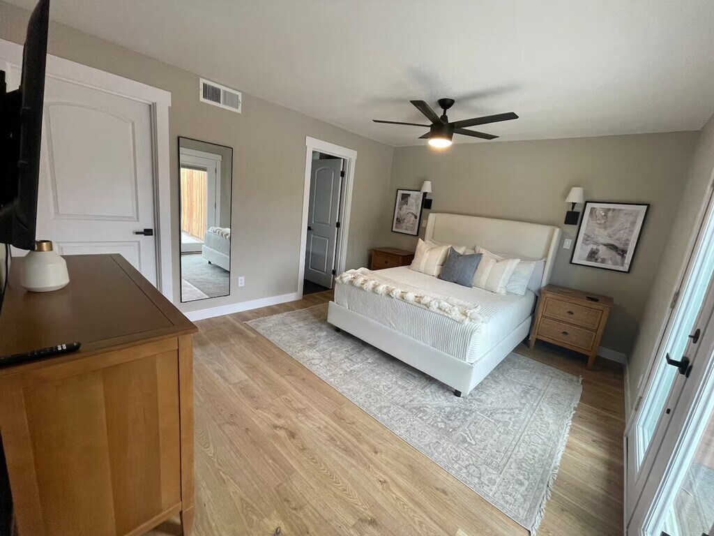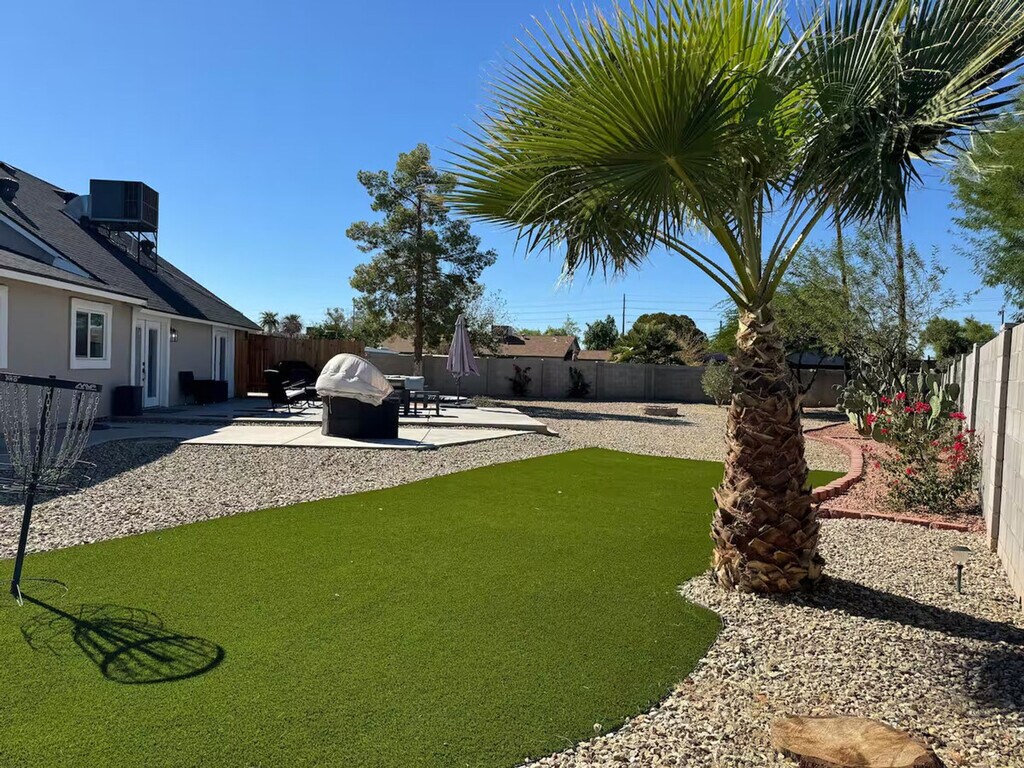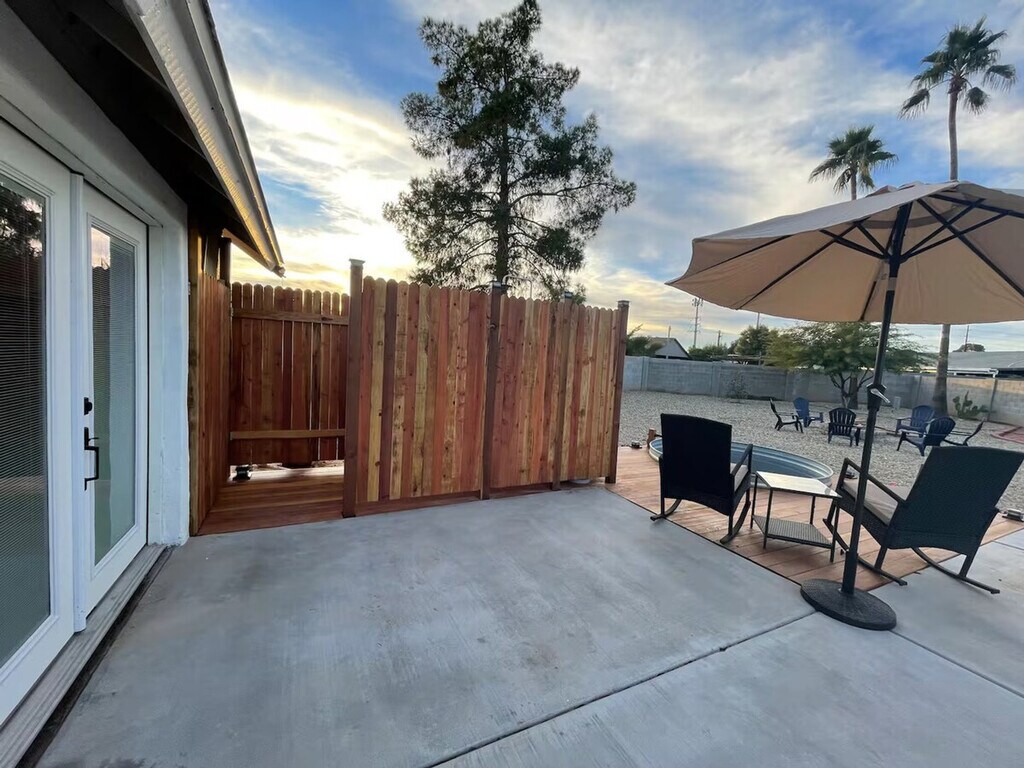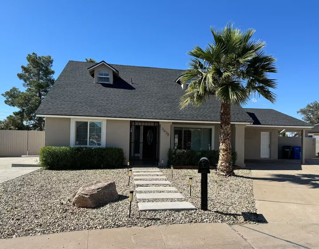Welcome to your relaxed desert home base in sunny Phoenix, AZ. This cozy 2-story home is all about easy living, offering 2000+ square feet of living space with a large backyard. Tucked away in a cul-de-sac, this 4-bedroom, 3-bathroom gem is minutes from many restaurants, shopping, and hospitals. The enclosed backyard is perfect for pets and features an outdoor shower, heated stock tank pool, and space to enjoy the Arizona weather. This home boasts a fully stocked kitchen, complete with a coffee maker, and a super chill living area with a big couch and smart TV. The private backyard is perfect for sipping your morning coffee or winding down after a day in the sun. Enjoy the good vibes outside by kicking back in the backyard, firing up the grill, or enjoying Arizona’s famous sunsets. The property offers free driveway and street parking. Nestled in a quiet neighborhood in West Phoenix, this home is just a short drive from various attractions. It's 10 minutes to State Farm Stadium, 15 minutes to Desert Sky Mall and Ak-Chin Pavilion, and close to Camelback Mountain, Desert Botanical Garden, Phoenix Zoo, Phoenix Art Museum, Papago Park, Musical Instrument Museum, Mystery Castle, Arizona Falls, Phoenix Convention Center, Chase Field, Oak Street Alley Murals, Yayoi Kusama Firefly Infinity Mirror Room, and Tovrea Castle. The booking guest will be required to e-sign a renter agreement on behalf of all the guests included on the reservation to ensure the house rules have been acknowledged. Booking guests will need to complete a simple guest verification process from a third-party vendor to provide a damage protection policy at no cost to the guest. Fast Wi-Fi is available for remote workers and binge-watchers alike. A washer and dryer are also provided for longer stays, and keyless entry allows for stress-free check-ins. [SI]
