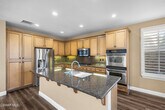 Welcome to this beautifully upgraded 4-bedroom, 3-bathroom home located in the highly desirable Big Sky Crosspointe community. Set in a very quiet neighborhood, this home offers a perfect blend of luxury, functionality, and comfort--inside and out.Step into a gourmet kitchen that will impress any chef, featuring granite countertops, a spacious center island, custom hazelnut cabinets, custom tile flooring, a wine cooler, dishwasher, stainless steel appliances, and a walk-in pantry.The open-concept living room is warm and inviting with custom tile floors and a cozy fireplace--perfect for entertaining, inside or out. Plus, enjoy a dedicated indoor laundry area for added comfort and convenience.Upstairs, you'll find the large primary suite with stunning views of the Big Sky hillside, an en-suite bath with custom granite countertops, a Jacuzzi tub, a separate walk-in shower, and a walk-in closet with full-length mirrored doors.Enjoy outdoor living in your private backyard oasis, complete with beautiful stamped concrete, a patio cover, a manicured lawn, and breathtaking mountain views overlooking a natural sloped hillside. New turf has been recently installed all around the house, creating a lush, low-maintenance landscape.Additional features include overhead and cabinet storage in the garage, providing plenty of space to stay organized.This home is move-in ready and loaded with upgrades--don't miss the chance to own a true gem in the Big Sky community.