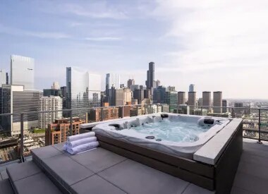 Property Id: 2309954 PROPERTY HIGHLIGHTS - WEST LOOP • Brand-new luxury high-rise • Walk Score of 94 • Indoor spa with hot tubs, steam & infrared saunas • Wraparound outdoor deck • State-of-the-art fitness center • Tonal Studio room & outdoor workout areas • Media room for games & entertainment • Community garden plots • Pet spa and on-site dog park • EV charging available • Garage parking available (additional cost) • CTA bus routes 8 & 56 nearby • CTA Blue, Pink & Green Lines within 10-minute walk APARTMENT FEATURES • Open-concept layouts • Floor-to-ceiling windows • Wide-plank hardwood flooring • Italian cabinetry • Natural stone countertops • Stainless steel appliances • Pantries in most units • Blackout roller blinds in bedrooms • Custom walk-in closets • Spa-inspired ensuite bathrooms • In-unit washer & dryer • Gas stove • Central air conditioning • Private balconies in all units