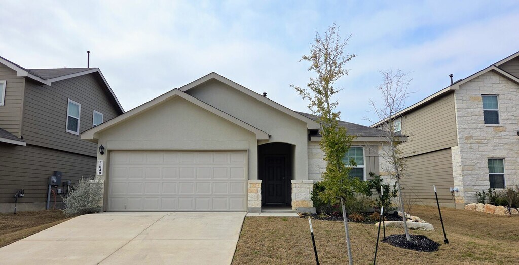 Welcome to your new home! Bright and modern single story 3 bedroom 2 bath home with high ceilings is ready for immediate move in. As you enter your new home you are welcomed by wide open entryway where two secondary bedrooms are separated by bath 2. Towards the back you walk into wide open living, dining and modern kitchen space. Fully equipped bright, white kitchen with sleek stainless steel appliance package including refrigerator and gas range. Great for entertaining. Primary suite tucked away with full ensuite bathroom with dual vanity and separate garden tub and stand up shower. Large Walk-in closet. Full size washer dryer connections. Large fenced backyard with young trees. Small covered patio. Two car garage with automatic garage door opener. Property does have Sprinkler system. Copper Canyon has a multitude of fun amenities available for all residents! Come cool off by the pool, get in a workout, or have some quality family time at the park! Gym. Dog Park. Pets welcome. Please see Bluebonnet Pet Policy for further details.