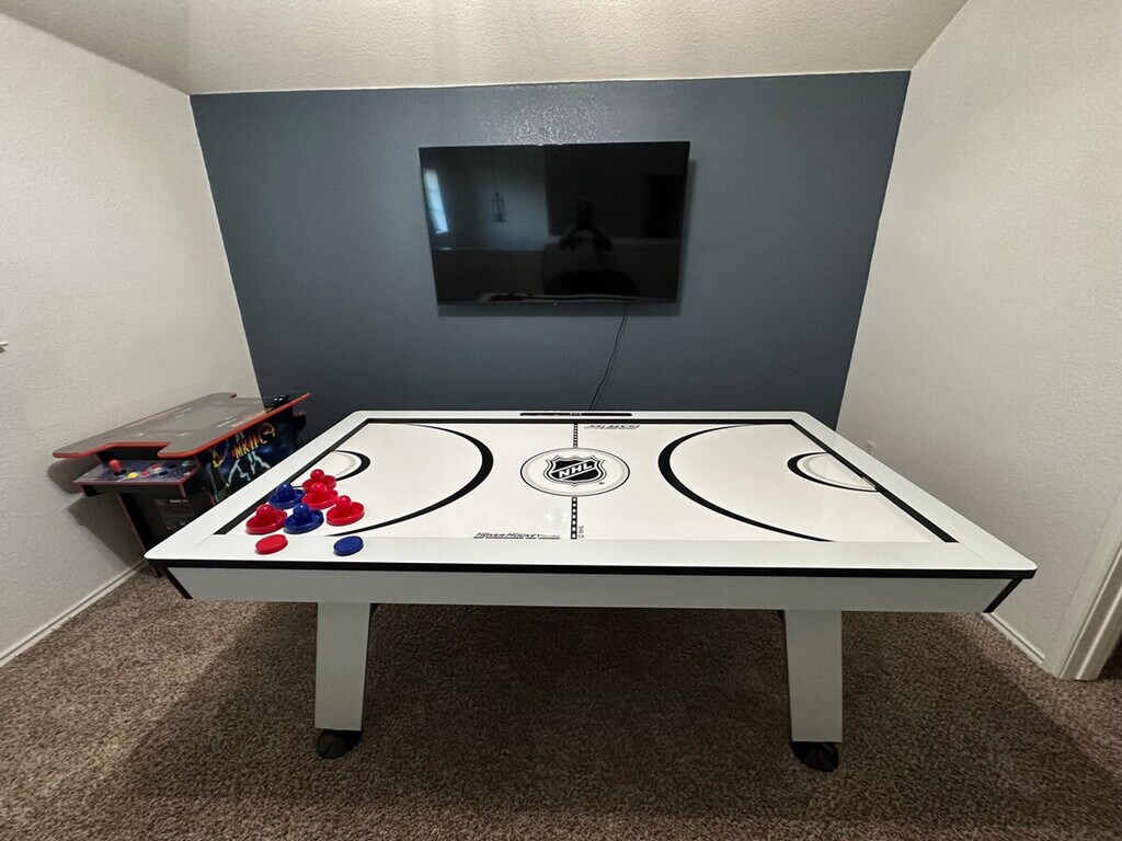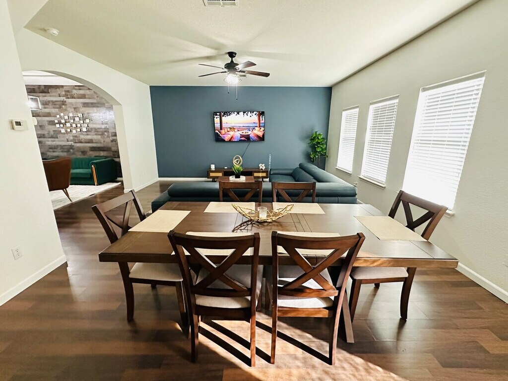 Welcome to your perfect family getaway in Round Rock, TX! Escape to this spacious 4-bedroom home, offering a blend of comfort and excitement for the entire family. With 3 king-size beds, 2 twin XL beds, a fully equipped kitchen, a game room, and scenic outdoor features, this retreat ensures a memorable stay. Enjoy the convenience of self-check-in with a smart lock, making your arrival hassle-free. This gem is perfect for families, groups, or anyone seeking comfort, joy, and connection. Immerse yourself in modern luxury at this stunning 4-bedroom haven, perfect for groups or families seeking a stylish and functional escape in Round Rock. Step inside and be greeted by an open floor plan bathed in natural light, effortlessly blending sleek modern design with cozy comfort. Whip up gourmet meals in the fully equipped kitchen, then gather around the spacious dining table for laughter and shared memories. Unwind in one of the two inviting living areas, each boasting a large-screen TV for movie nights or game nights. Retreat to one of the four plush bedrooms, each featuring comfy beds, ample storage, and ceiling fans for added comfort. Rejuvenate in the spa-like bathrooms, complete with fluffy towels and essential toiletries. The master suite even pampers you with a luxurious bathtub and shower. Step outside and soak up the Texas sunshine in the private fenced backyard, perfect for barbecues, games, or simply relaxing under the open sky. Guests have access to the entire property, including the spacious courtyard and garden. Enjoy the convenience of free parking on the premises with a private entrance for added privacy. Extra charge for pets $300 per pet per stay applies. Dogs only. Maximum 2 dogs only. Dogs under 30 pounds only. No aggressive breeds. Prior approval required. Nestled in a friendly neighborhood, this home offers a peaceful retreat with scenic views. Explore nearby parks, shops, and restaurants, or take a short drive to downtown Round Rock for a taste of local culture. Discover the best of Round Rock and beyond, all within a short drive from the comfort of your home in Texas! For everyone's safety and security, there are cameras installed in the following outdoor areas: garage, front yard, side yard, deck and patio areas, steps, and backyard. Additionally, there are door and window sensors, as well as motion sensors, inside the property. Quiet hours are from 9 PM to 8 AM. This unit is strictly non-smoking with a smoking penalty of $500 per night booked. No events, parties, or large gatherings are allowed with a penalty of $500 per person per night booked. No extra guests or visitors allowed with a penalty of $500 per person per night booked. If you need to add please let us know in advance to avoid penalty. You will be responsible for any damage to the property caused by you or your guests during your stay. Must be at least 21 years old to book and a photo ID is required for check-in. Work remotely in style with dedicated workstations in each room, ensuring seamless productivity even on vacation. [SI]