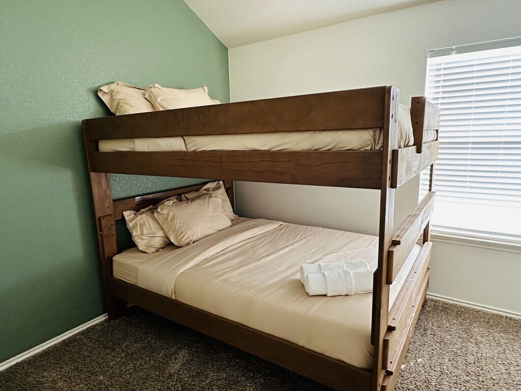 The advertised rate of $3,680/month is the lowest available price, based on a 1 month(s) and 2 day(s) stay with a move-in date of February 17, 2026. Rates vary depending on the duration of stay, season, and other parameters. For exact pricing and additional pricing components, please visit our website and enter your desired move-in and move-out dates. The rate is applicable when billed upfront; it can be higher if billed in multiple payments. Immerse yourself in modern luxury and feel at home in this stunning 4-bedroom haven, perfect for groups or families seeking a stylish and functional escape in Round Rock. Step inside and be greeted by an open floor plan bathed in natural light, effortlessly blending sleek modern design with cozy comfort. Whip up gourmet meals in the fully equipped kitchen, then gather around the spacious dining table for laughter and shared memories. Unwind in one of the two inviting living areas, each boasting a large-screen TV for movie nights or game nights. Rejuvenate in the spa-like bathrooms, complete with fluffy towels and essential toiletries. The master suite even pampers you with a luxurious bathtub and shower. Step outside and soak up the Texas sunshine in the private fenced backyard, perfect for barbecues, games, or simply relaxing under the open sky. Guests have access to the entire property, including the spacious courtyard and garden. Enjoy the convenience of free parking on the premises, with a private entrance for added privacy. An extra charge of $300 per pet per stay applies. Only dogs are allowed, with a maximum of 2 dogs under 30 pounds each. Prior approval is required. This beautifully appointed home is centrally located near all the best that Round Rock has to offer, from family-friendly attractions to delicious restaurants and vibrant nightlife. Nestled in a friendly neighborhood, this home offers a peaceful retreat with scenic views. Explore nearby parks, shops, and restaurants, or take a short drive to downtown Round Rock for a taste of local culture. Meadowlake Park is 1.1 miles away, Jack Allen's Kitchen is 3.5 miles away, Austin-Bergstrom International Airport (AUS) is 28.6 miles away, The Domain is 15 miles away, Round Rock downtown is 4.1 miles away, Johnson City is 72.7 miles away, Downtown Austin is 20 miles away, Old Settlers Park is 5 miles away, Kalahari Resort is 5.3 miles away, University Commons is 2.7 miles away, University Oaks Shopping Center is 2.9 miles away, Inner Space Cavern is 6.2 miles away and Fort Cavazos is 55.1 miles away. This unit is strictly non-smoking, and smoking will result in a penalty of $500 per night booked. No events, parties, or large gatherings are allowed, and will result in a penalty of $500 per person per night booked. No extra guests or visitors are allowed, and will result in a penalty of $500 per person per night booked. Quiet hours are from 9 PM to 8 AM. Guests must be at least 21 years old to book. Work remotely in style with dedicated workstations. [SI]