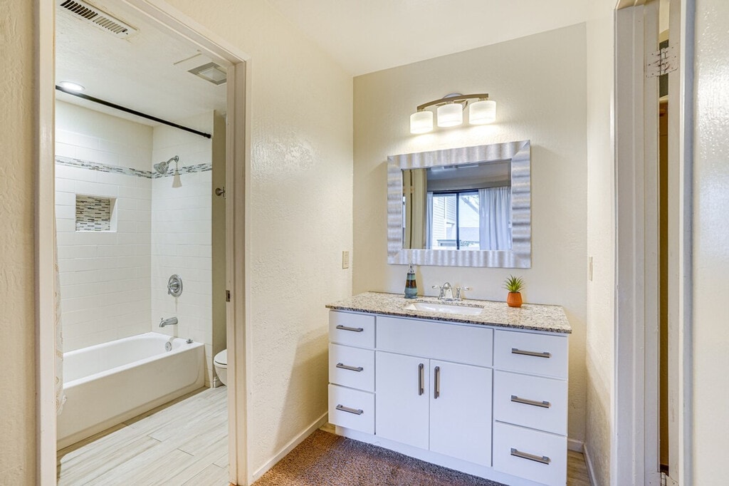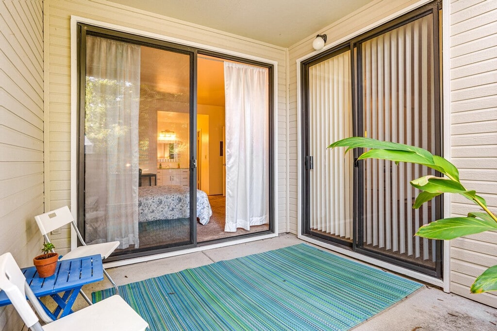 Feel at home in this cozy 1-bedroom condo in Richmond, located in the Hilltop Village community. This single-story unit requires exterior steps for access. This condo features a decorative fireplace, board games, books, vaulted ceilings, a dining table, and a private patio with outdoor seating. The kitchen is equipped with a refrigerator, stove/oven, dishwasher, French press and Keurig coffee makers, toaster, microwave, cooking basics, dishware and flatware, crockpot, spices, water filter, blender, washer and dryer, laundry detergent, iron and board, linens and towels, trash bags and paper towels, complimentary toiletries, and a hair dryer. A pet is welcome with a $50 fee. Covered parking for one vehicle in a dedicated space is available, as well as a community parking lot on a first-come, first-served basis. Access to the community pool is available from May to September, and there is also a tennis court. Enjoy a centrally located condo just a short drive from major cities, outdoor activities, and essentials. Take a trip to San Francisco for fresh sourdough or explore the shoreline. Smoking, events, parties, and large gatherings are not allowed. Includes a laptop-friendly desk and free Wi-Fi. [SI]