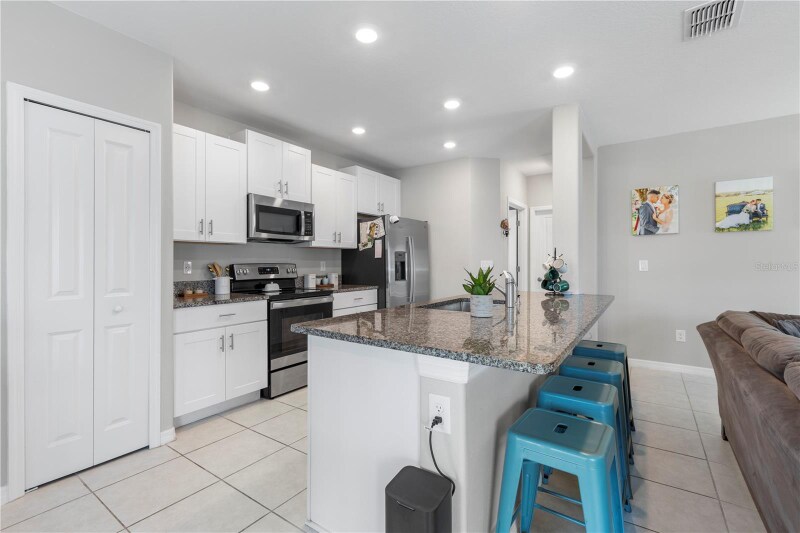 Property Id: 2149873 Like-new Lennar-built home from 2023 featuring 4 bedrooms, 2.5 bathrooms, and 1,764 sq. ft. of thoughtfully designed living space, perfectly located in the heart of Zephyrhills near the thriving Wesley Chapel area. This two-story home offers a bright and open floor plan with a spacious family room and a combined dining and kitchen area that flows effortlessly for entertaining and everyday living. The kitchen is equipped with upgraded white cabinetry, granite countertops, stainless steel appliances, and a large center island with seating-ideal for meal prep or casual dining. All four generously sized bedrooms are located upstairs, including a spacious owner's suite with a walk-in closet and a private en-suite bathroom. Neutral paint colors throughout create a warm and inviting atmosphere. Outside, enjoy a fully fenced backyard with lush new sod, upgraded landscaping, and a screened-in back patio-perfect for enjoying the Florida weather in comfort and privacy.