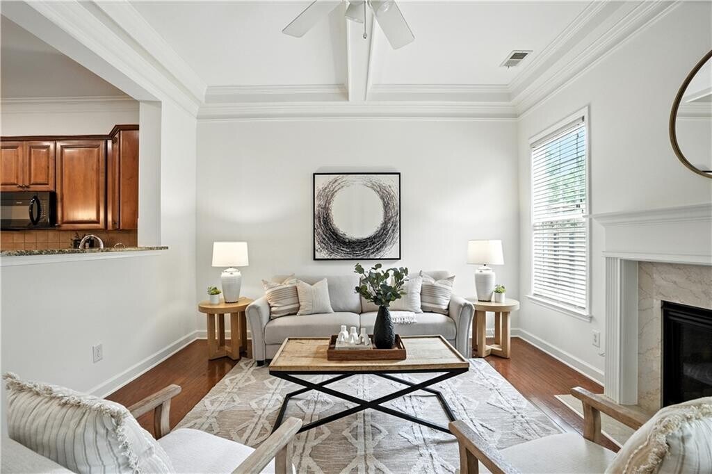Brookhaven beauty walkable to Blackburn Park,Henri's Bakery,multiple restaurants and Publix! Two-story townhome in Danbury Parc offers the convenience of a main-level primary suite and garage entry,hard to find in this area! The open floor plan features a kitchen with granite countertops,island and pantry,a living room with coffered ceilings and fireplace,and a dining room with wainscoting. Step right out to your private patio and backyard,no stairs needed! The main-level suite includes a spa bath with soaking tub,shower,and walk-in closet. Upstairs you’ll find three spacious bedrooms,two baths,a loft,and a bonus/media room with surround sound. Enjoy low-maintenance living with a community pool and an unbeatable location just minutes to Brookhaven Village,Buckhead,and Chamblee.