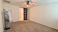 Cute rental with a split floor plan and a bright,open kitchen. The modern kitchen includes granite countertops,stainless steel appliances,and a large pantry. A separate laundry room adds convenience. The primary suite features a dual-sink vanity,walk-in shower,and a private toilet room. Enjoy the spacious backyard with pavers and turfperfect for relaxing or entertaining.