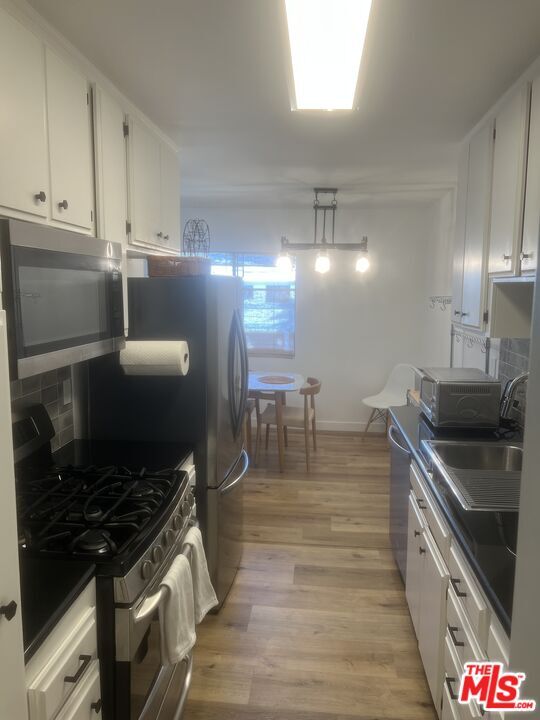 This bright and airy front corner, top-floor unit offers privacy, comfort, and modern style with only one shared wall. The spacious living room features vaulted ceilings, abundant natural light, and a gas fireplace for a warm, inviting atmosphere. Step through new double-paned sliding doors onto your private balcony, perfect for relaxing or entertaining. Enjoy convenient features throughout, including a heating and A/C unit in every room, in-unit washer and dryer, and new double-paned windows for quiet, energy-efficient living. The primary suite includes a walk-in closet and an en-suite bathroom, with thoughtful updates throughout ensuring move-in readiness.Building amenities include two non-tandem parking spaces, a secure storage unit in the garage, and electric car chargers for added convenience. Water is included; tenants pay for gas, electricity, and Wi-Fi. Dogs under 50 lbs are welcome (no cats).Located on a peaceful residential stretch of Westwood Boulevard in Palms, near Mar Vista and Culver City, this home offers an ideal blend of urban accessibility and neighborhood tranquility. MLS# 25615927