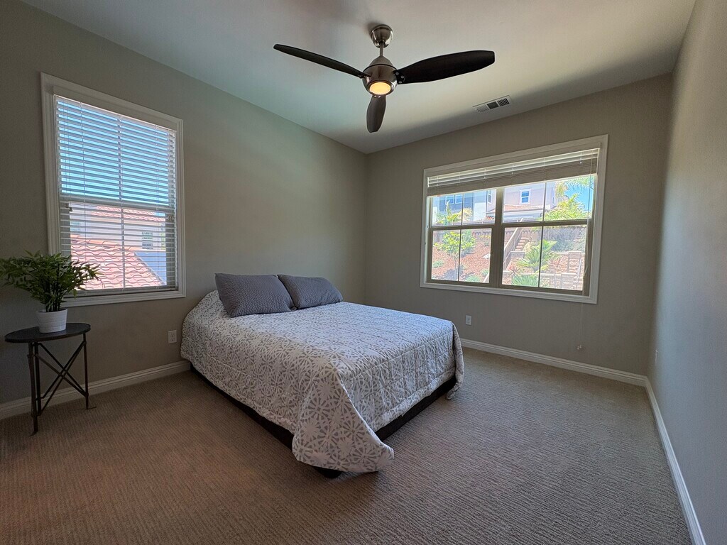 SINGLE OCCUPANT ONLY. If you're looking for a quiet, well-maintained place to call home with plenty of space, privacy, and beach-close convenience this could be the perfect fit. Located in the highly desirable Calavera Hills Village community, this peaceful owner-occupied home is just 3 miles (about 8 minutes) from Carlsbad's beautiful coastline. Location Highlights: Minutes from beaches, shopping, dining, parks, and walking trails with everything you need for a relaxed Southern California lifestyle. About the Room: Enjoy a bright, spacious upstairs bedroom with a private bathroom a comfortable retreat featuring large windows overlooking a lush backyard and sparkling pool. The room features soft carpet underfoot, a roomy closet for easy storage, and freshly painted, neutral tones ready to match your style. Shared Space: You'll have access to a fully stocked kitchen with everything you need for cooking, plus a cozy living room and tidy dining area. Washer and dryer are conveniently located upstairs. Outside, a serene patio with pool views offers a perfect spot to relax and soak up the California sunshine. Exceptional Privacy: Enjoy a quiet, independent living environment with minimal household traffic. The home is very peaceful, offering you an added sense of space and privacy that's rare in shared rentals. A detached casita on the property is occupied by a student, but it has a completely separate entrance and no shared access to the main house or pool, ensuring your peace and privacy. Community Amenities: Just steps from the home (about 300 feet away), you'll have access to additional amenities including a second pool and jacuzzi, tennis courts, and a BBQ area perfect for unwinding or staying active. Ideal for: A single renter who values a peaceful, respectful living space in a safe, beach-close neighborhood. Perfect for professionals, grad students, traveling nurses, or anyone seeking comfort, privacy, and convenience. Looking for a responsible, respectful tenant who appreciates a peaceful, well-maintained home environment. Applicant Process: - Complete pre-screening questionnaire - Submit rental application with credit, background, and rental history screening - First month's rent + $2,350 security deposit due at lease signing Contact us today to schedule a private viewing and see if this peaceful home is the right fit for you.